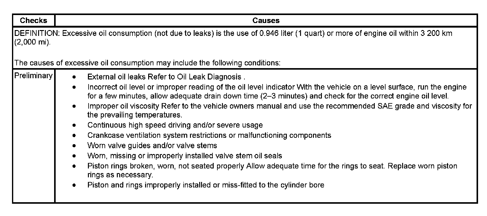 Oil Consumption Diagnosis: