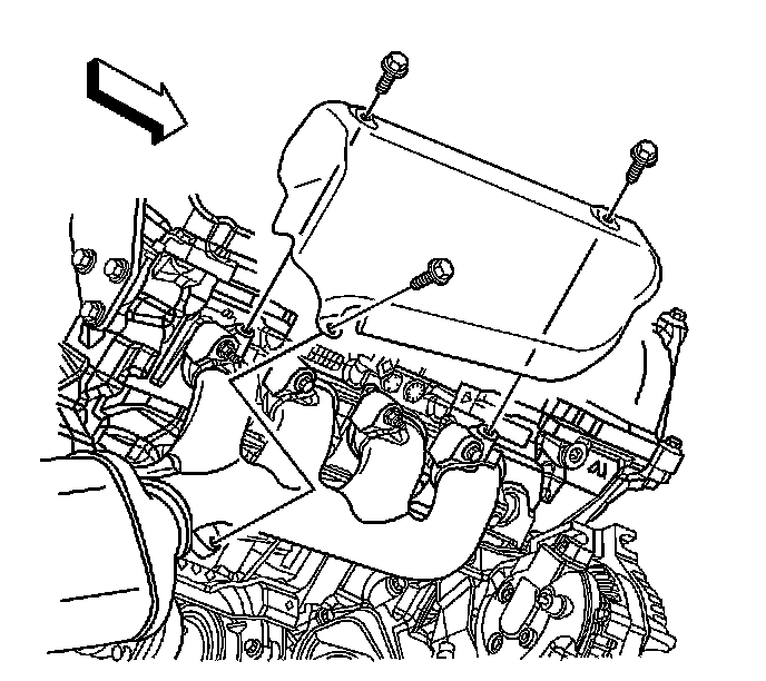 2. Remove the bolts securing the exhaust manifold heat shield to the exhaust manifold.