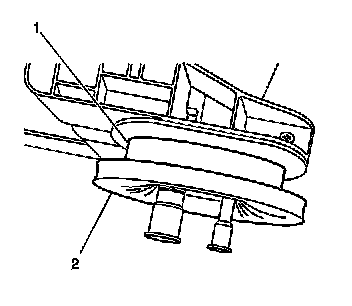 11. Disconnect the HVAC module drain tube (2) from the floor.
