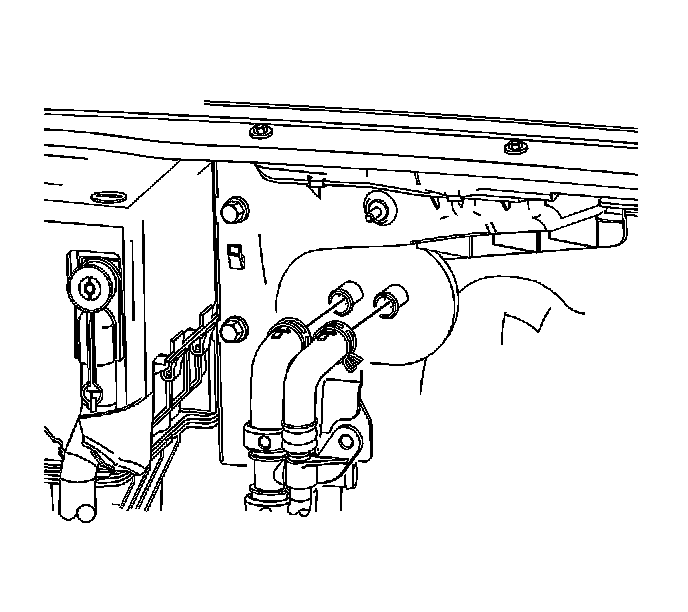 7. Using J 38185, disengage the hose clamps and disconnect the heater pipe assembly from the heater core.
