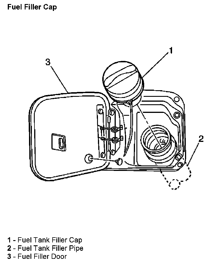 NOTE: Use a fuel tank filler pipe cap with the same features as the original when a replacement is necessary. Failure to use the correct fuel tank filler pipe cap can result in a serious malfunction of the fuel system.