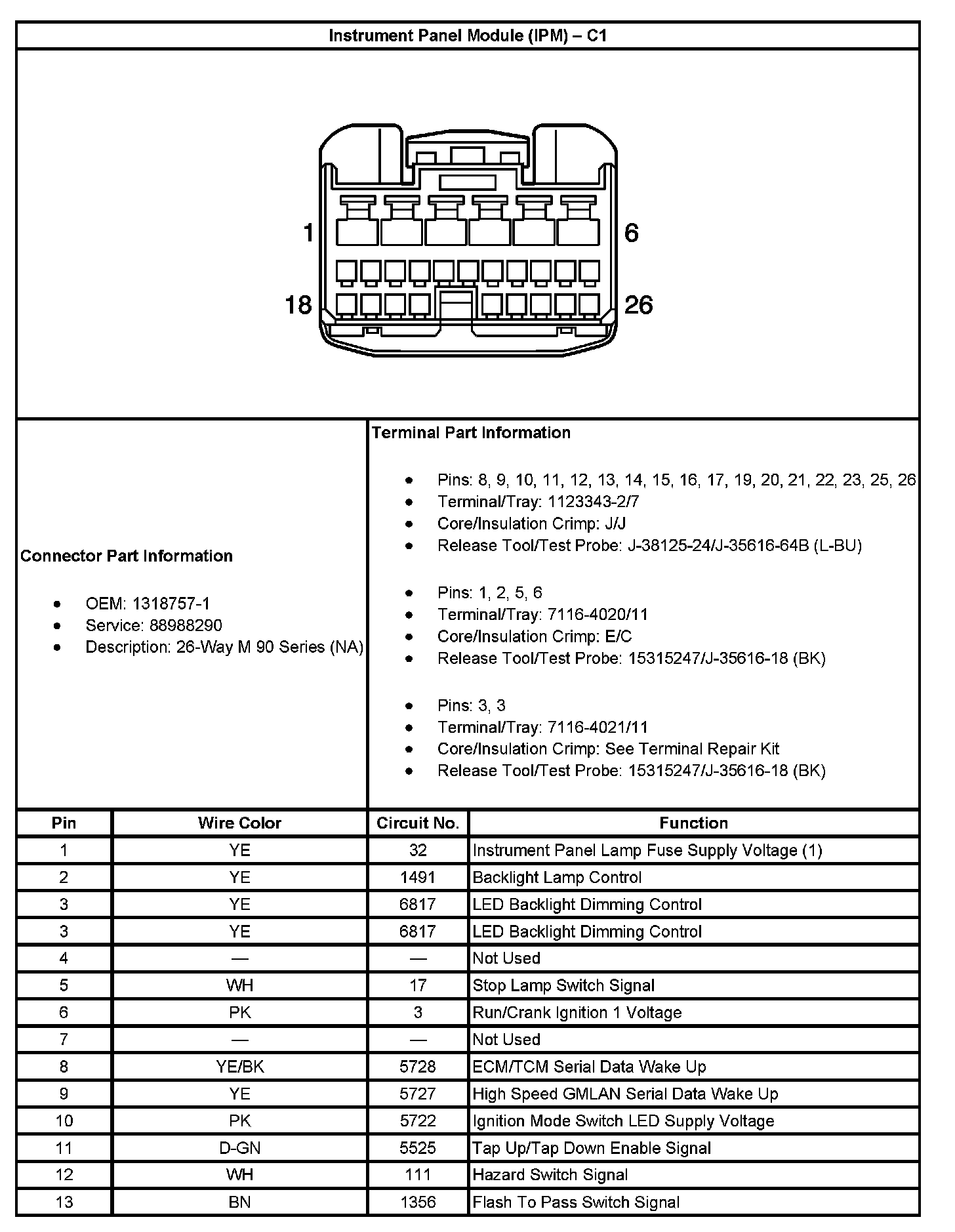 Instrument Panel Module (IPM) - C1 (Part 1):