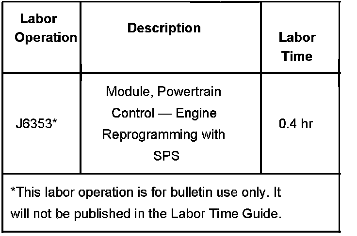 Reprogram the ECM with the latest calibrations if the above concern is encountered. An updated ECM calibration is now available to address this concern. This calibration, or any that follow, is designed to address this concern. Refer to Service Programming System (SPS) using the appropriate Service Information (SI) procedures. The new ECM calibrations will be available to dealerships in TIS2Web (website version of TIS) version 10.5 for 2006 beginning 10/15/2006. If you cannot access the calibration, call the Techline Customer Support Center and it will be provided. As always, make sure your Tech 2(R) is updated with the latest software version.