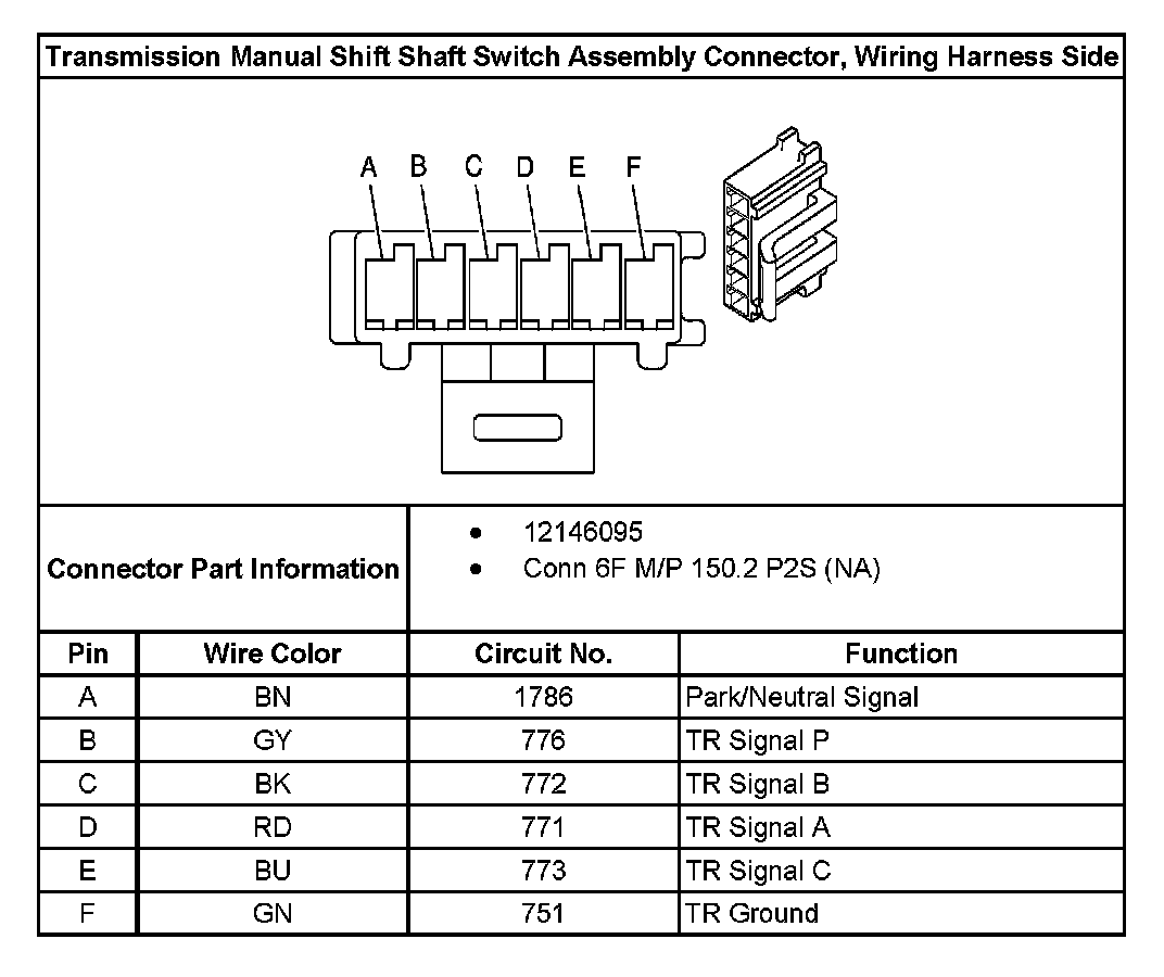 Transmission Manual Shift Shaft Switch Assembly Connector, Wiring Harness Side:
