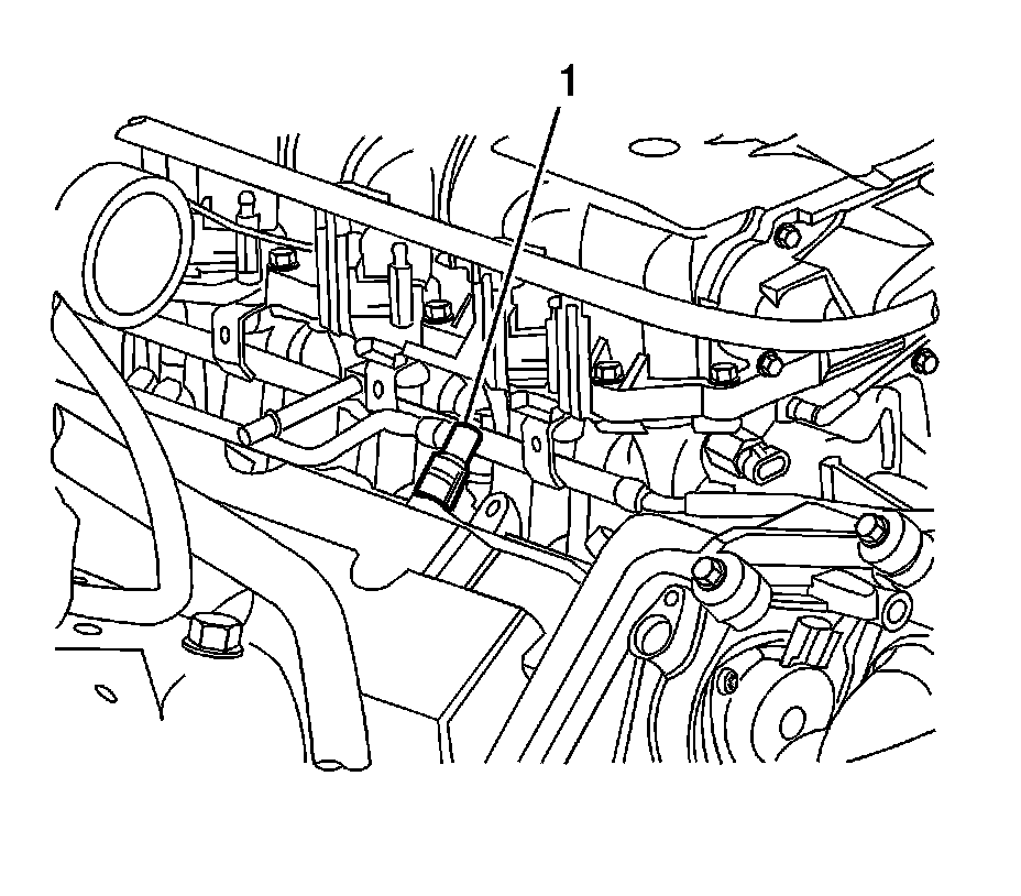 17. Disconnect the supercharger inlet absolute pressure (SIAP) sensor vacuum line fitting (1) from the rear of the supercharger. Position the sensors, vacuum lines, and wire harness aside.