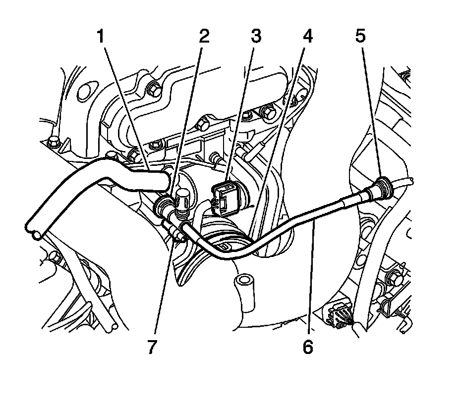 13. Disconnect the evaporative emission (EVAP) canister purge solenoid valve electrical connector (7).