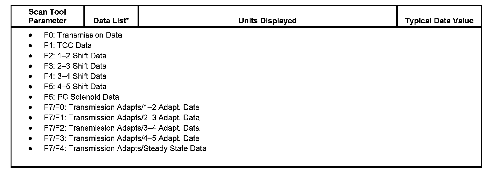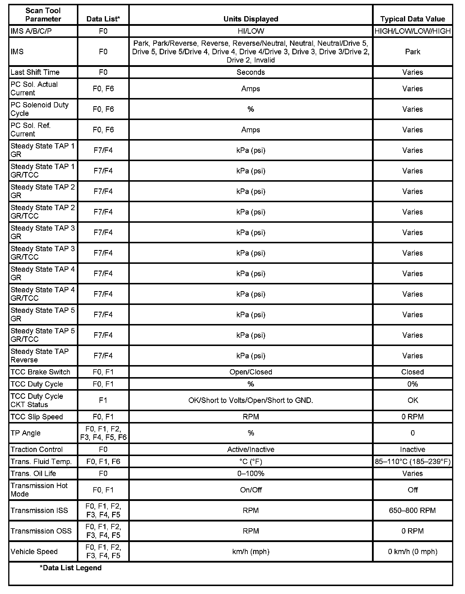 Only the parameters listed below are used in this service manual for diagnosing. If a scan tool displays other parameters, the values are not recommended by General Motors for use in diagnosis.