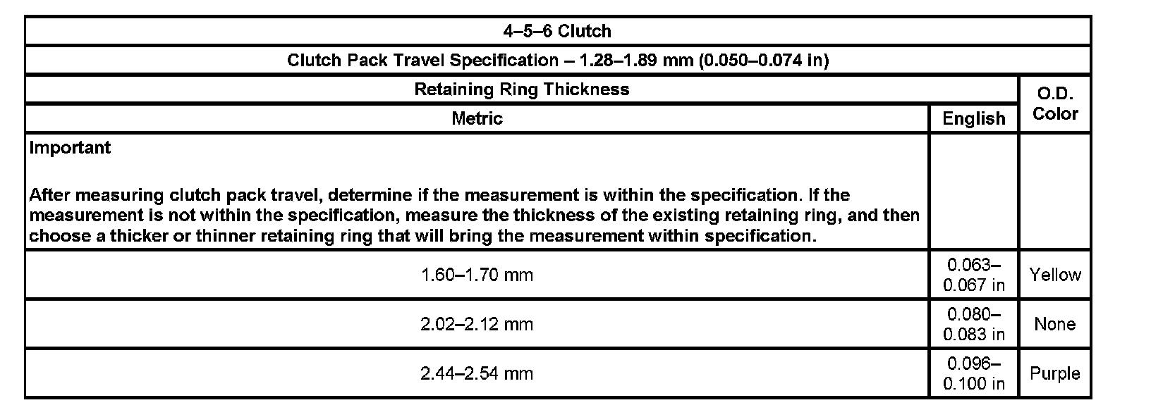 Clutch Backing Plate Retaining Ring Specifications