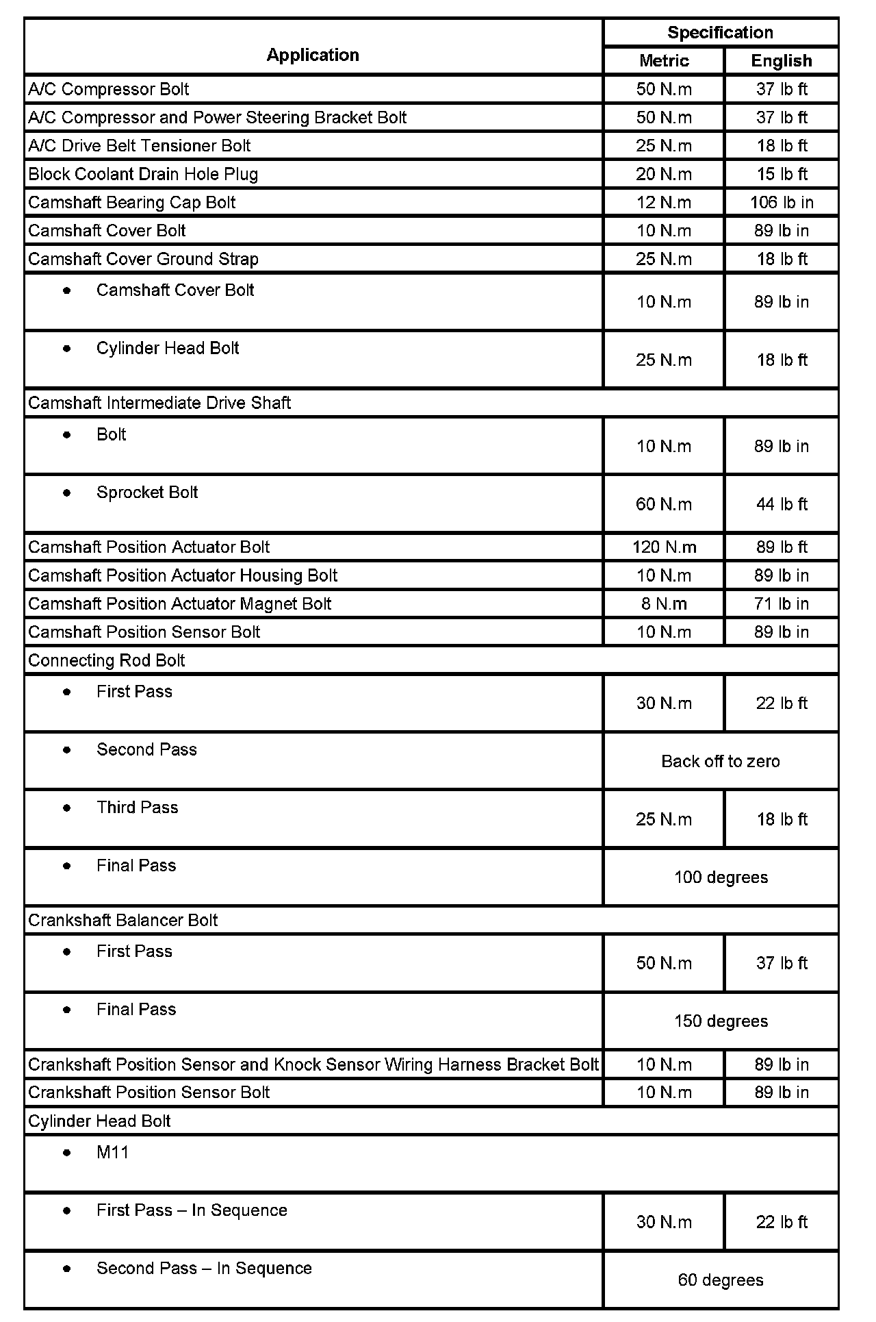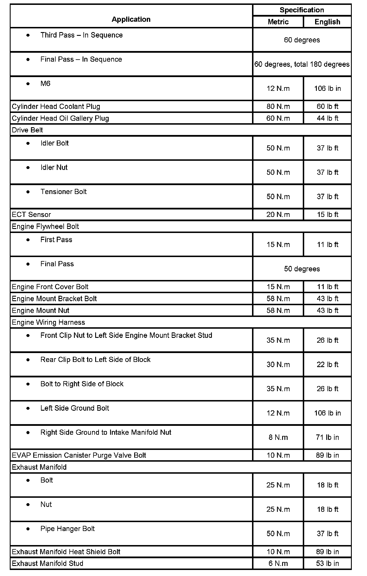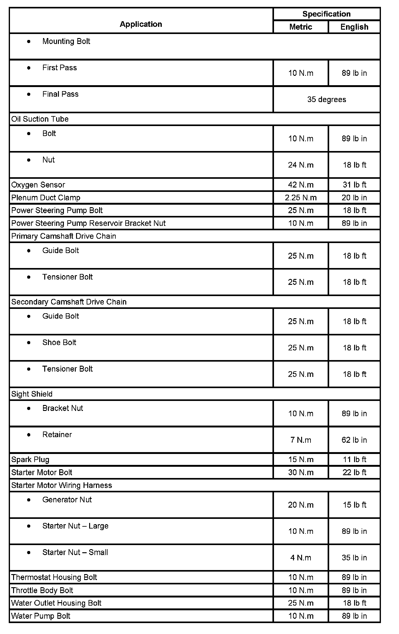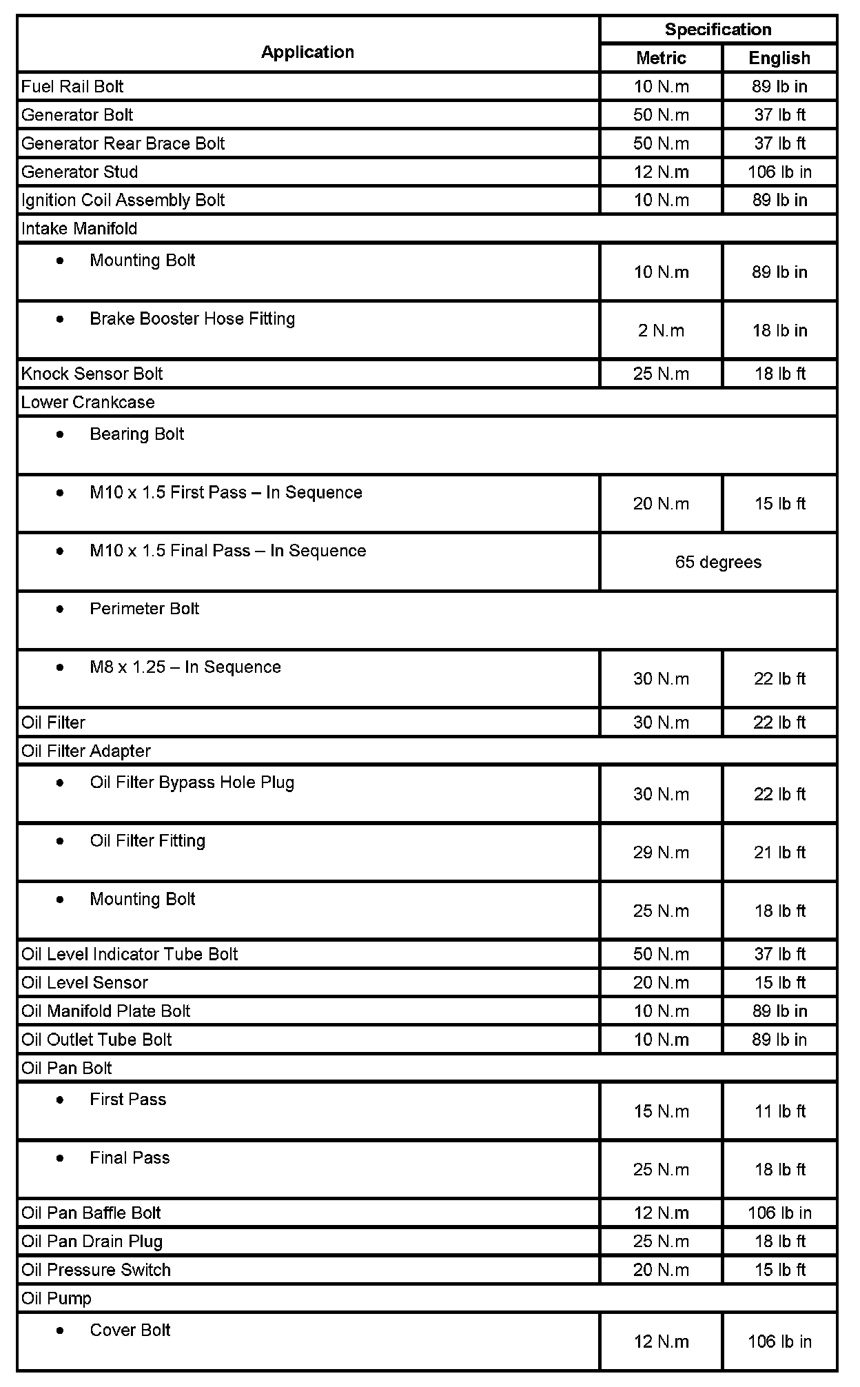Fastener Tightening Specifications: