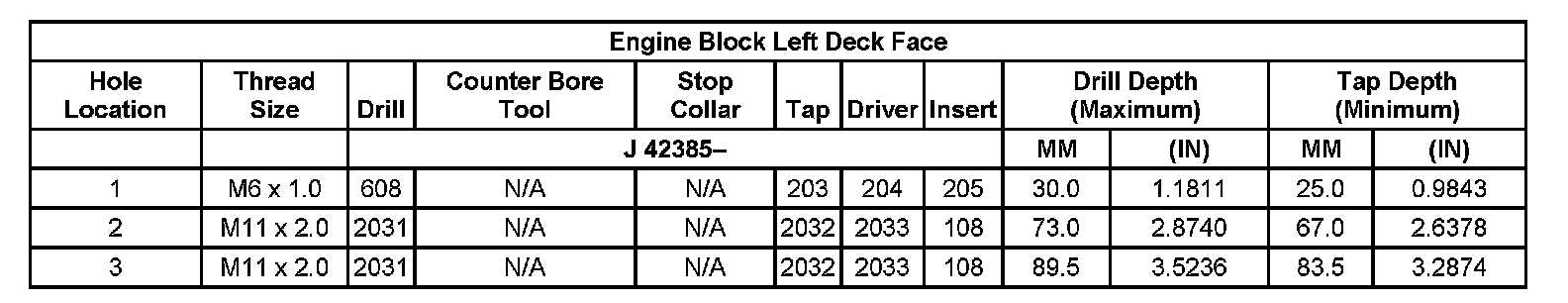 Thread Repair Specifications Left Cylinder Head Camshaft Cover Face: