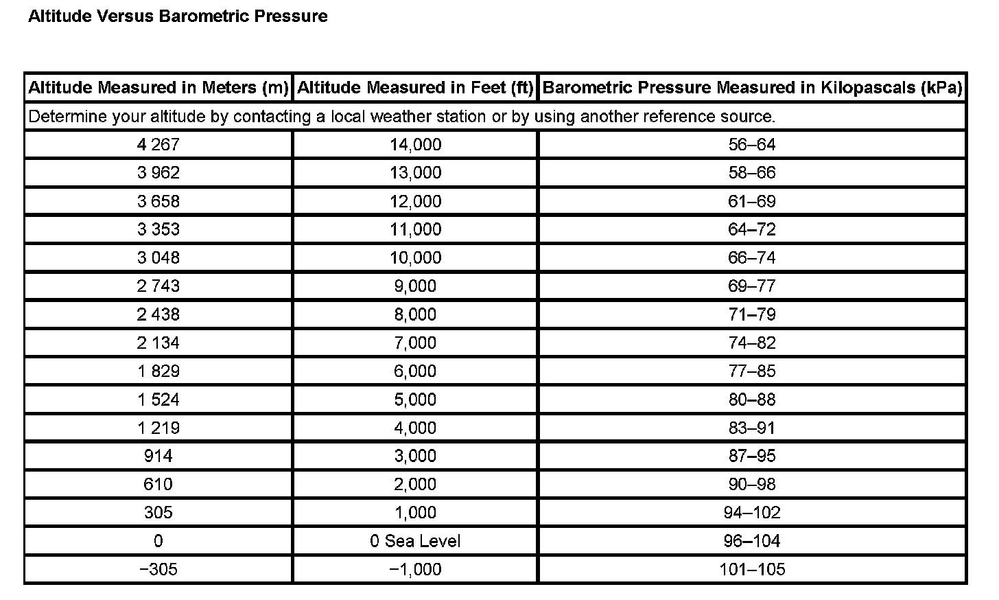 Altitude Versus Barometric Pressure: