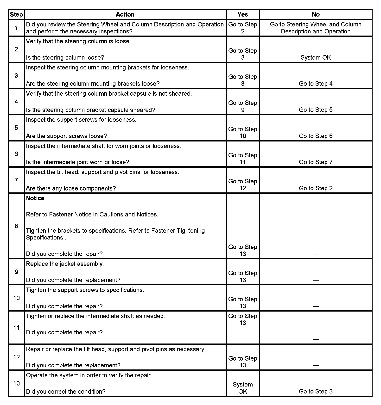 Looseness In Steering Column
