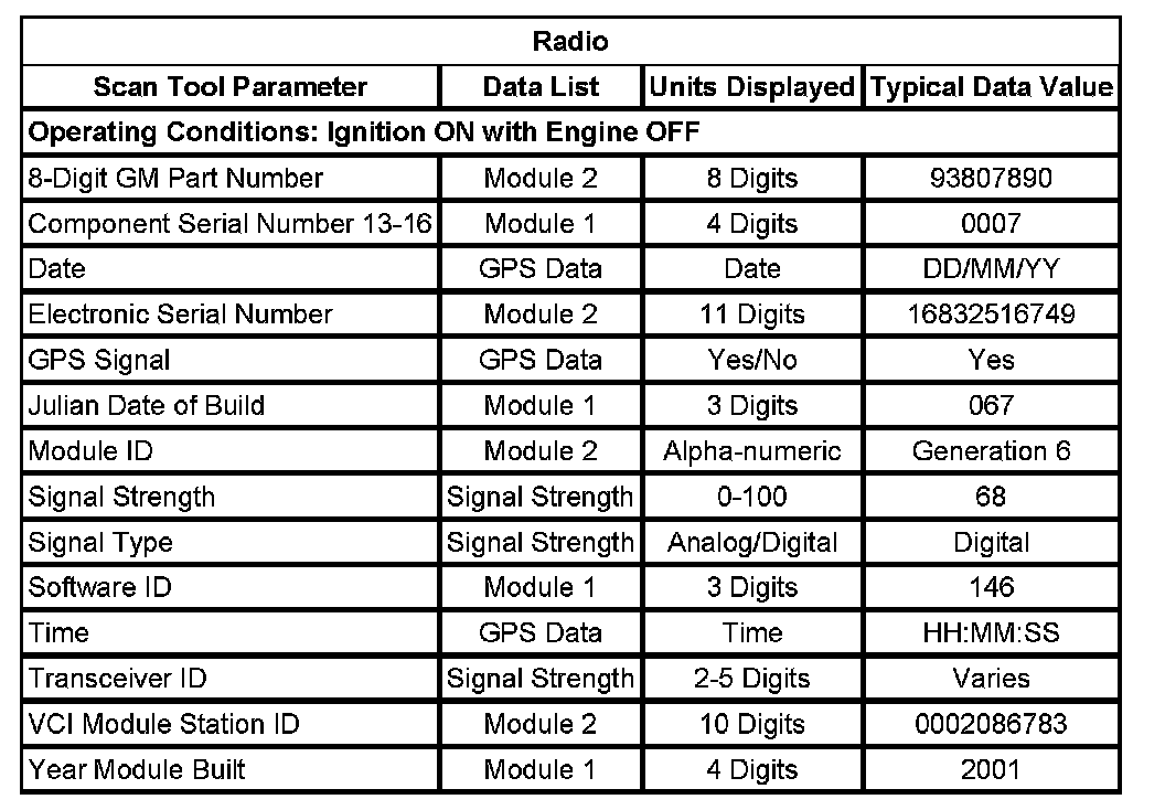 Scan Tool Data List