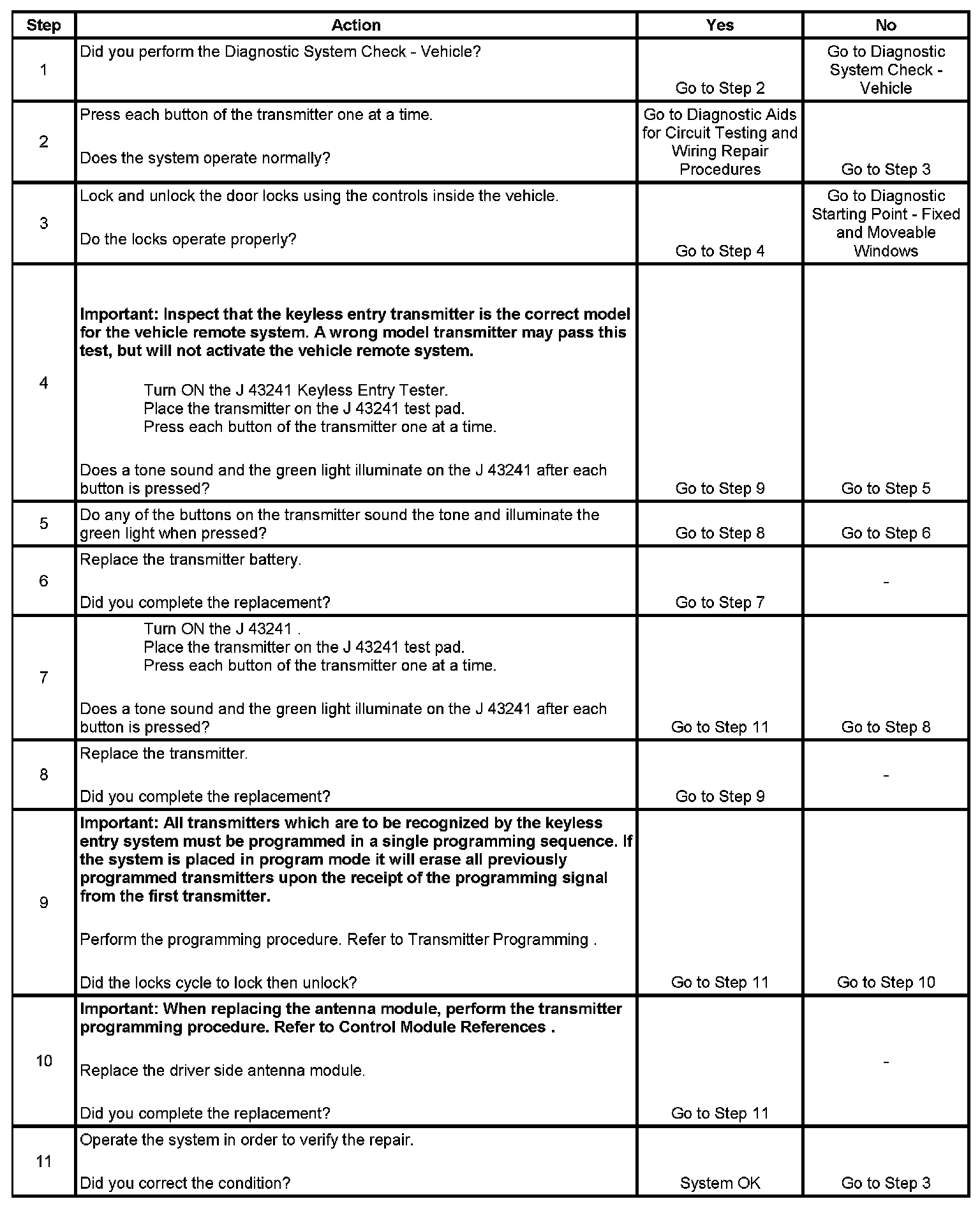 Keyless Entry System Inoperative