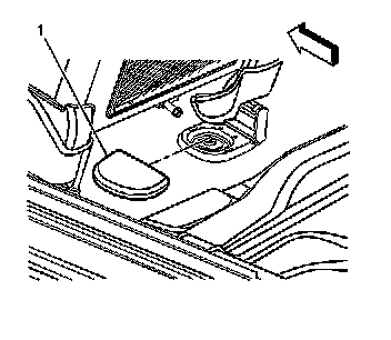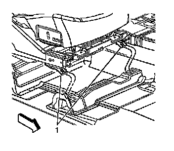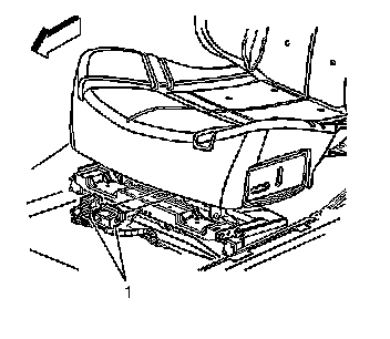 2. Move the front seat forward in order to access the front seat track trim cover (1).