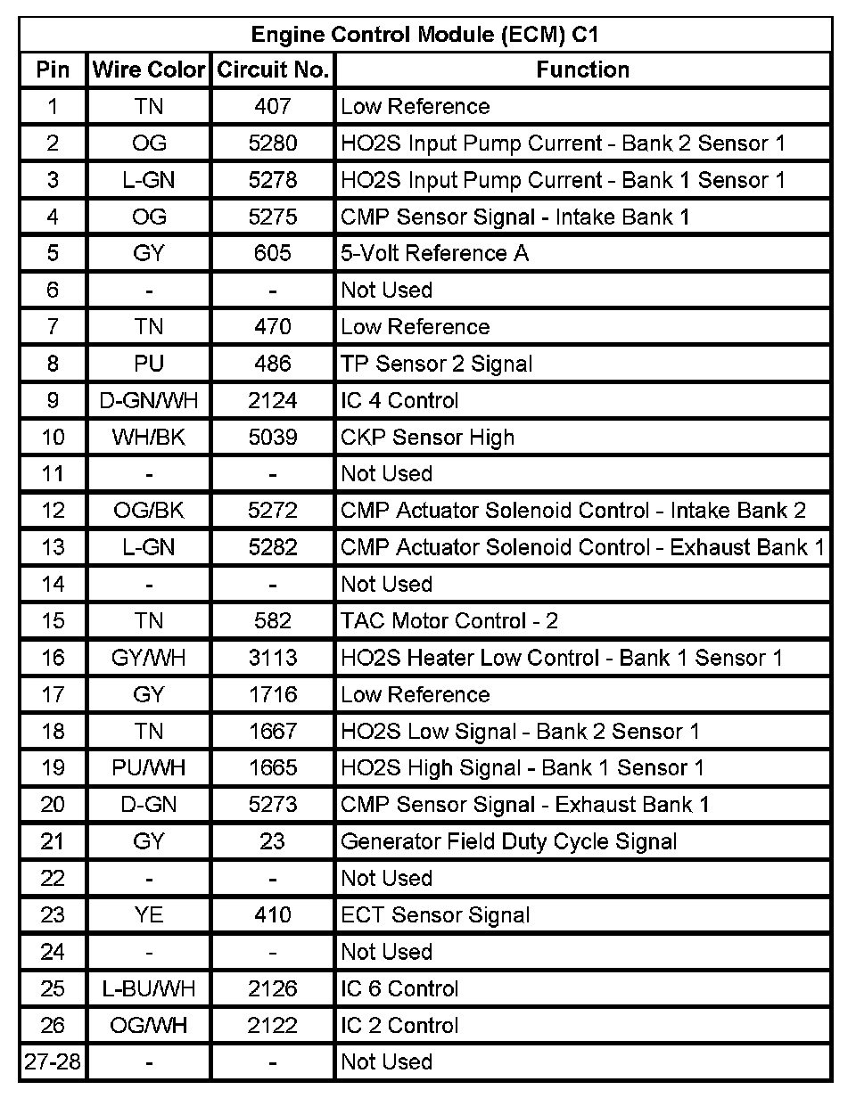 Engine Control Module (ECM) C1 (Pin 1 To 28):