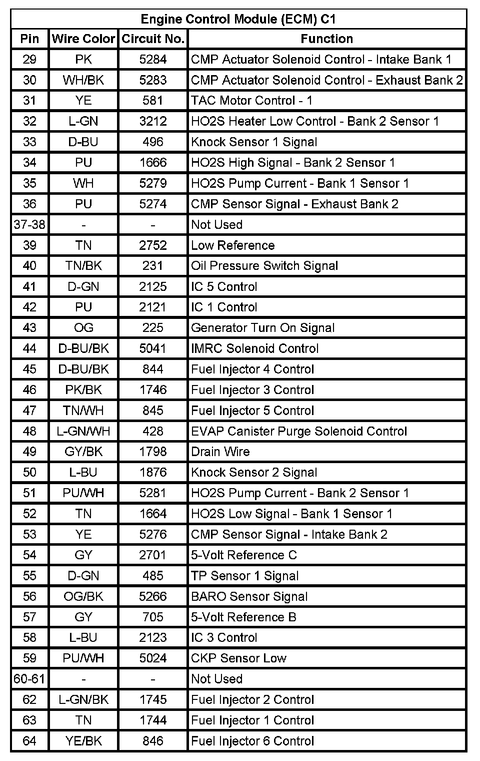 Engine Control Module (ECM) C1 (Pin 29 To 64):