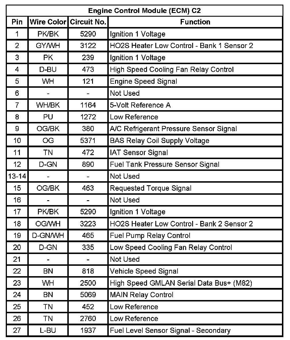 Engine Control Module (ECM) C2 (Pin 1 To 27):