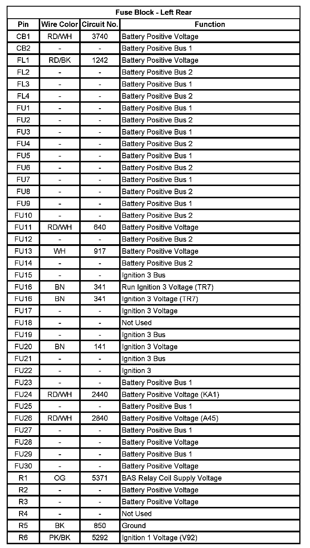 Fuse Block - Left Rear (Pin CB1 To R6):