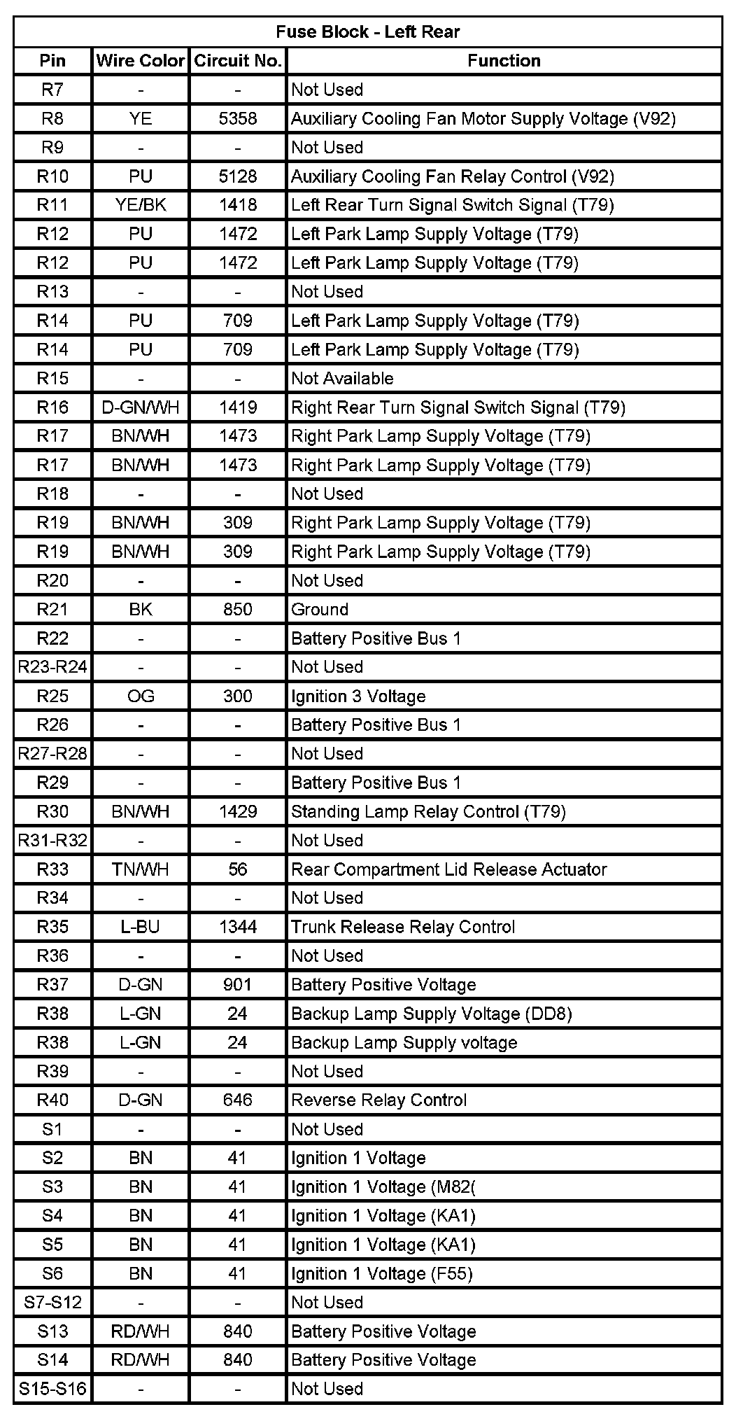 Fuse Block - Left Rear (Pin R7 To S16):