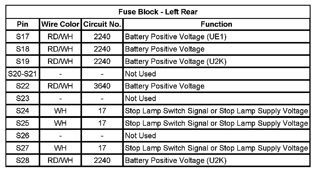 Fuse Block - Left Rear (Pin S17 To S28):