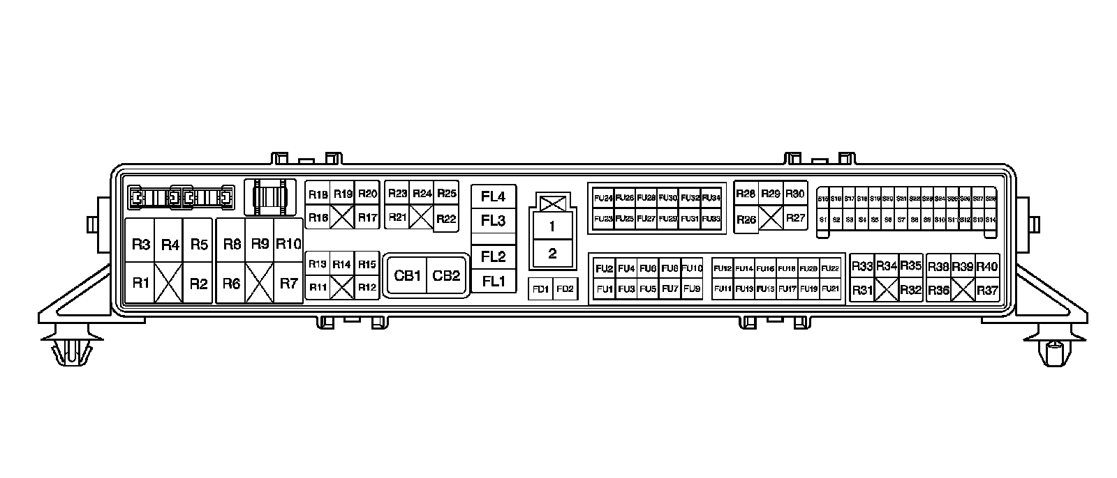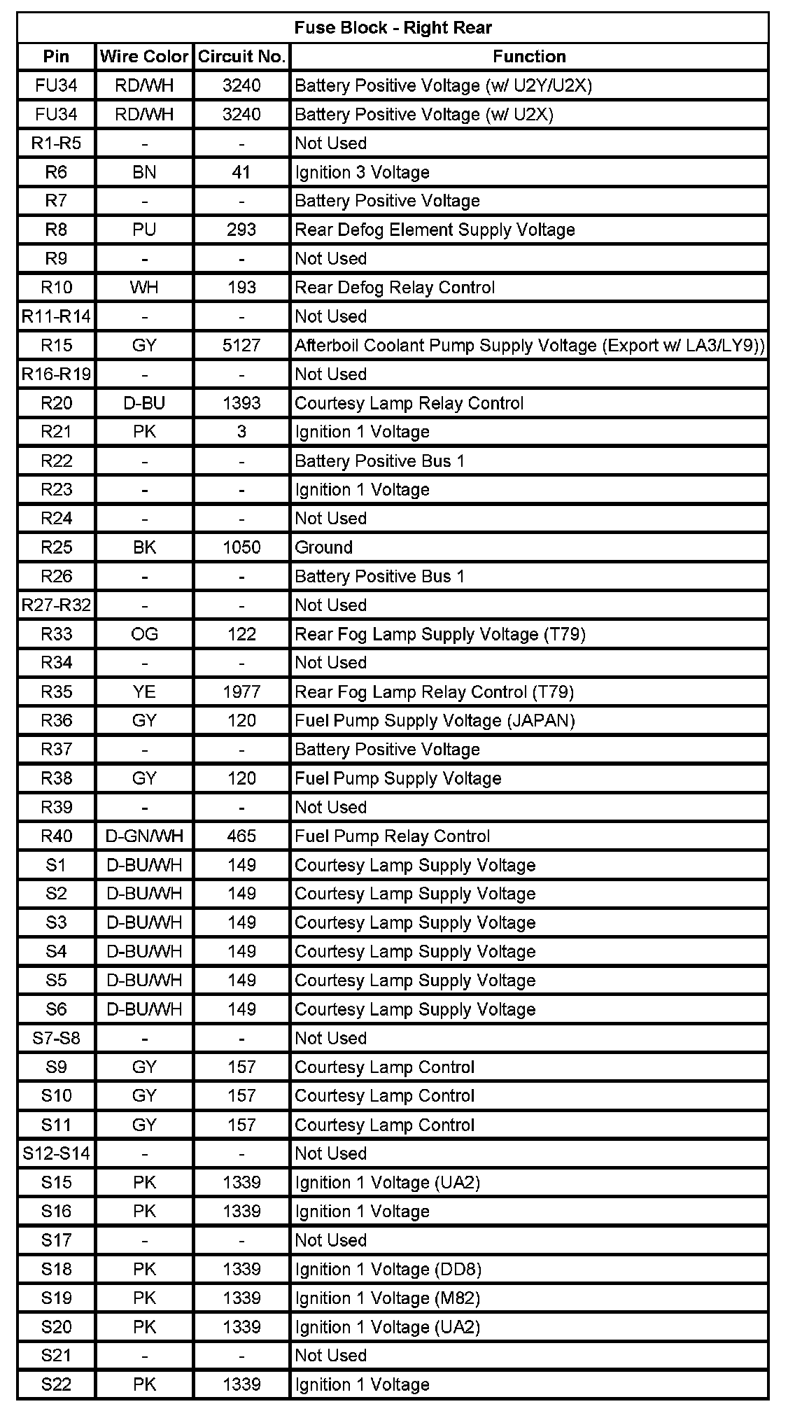 Fuse Block - Right Rear (Pin FU34 To S22):