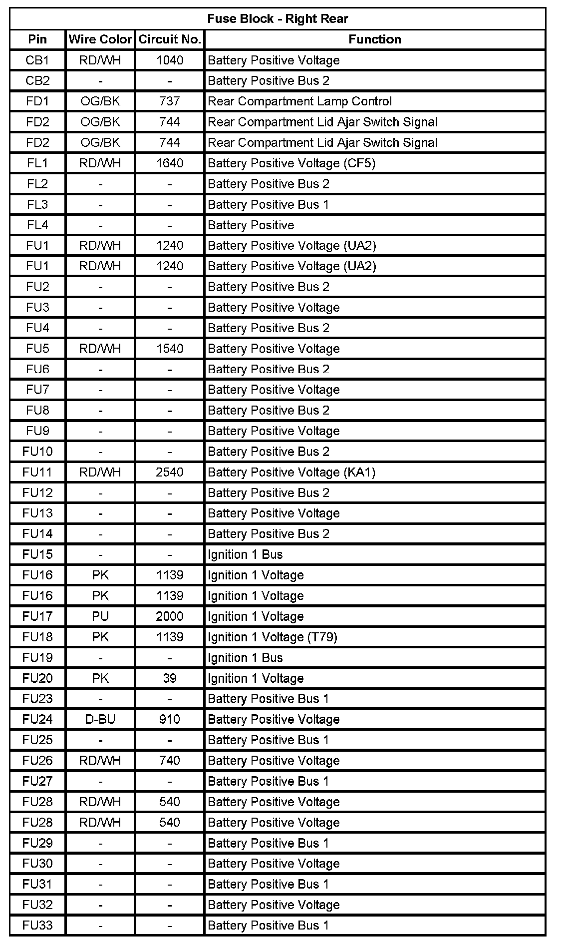 Fuse Block - Right Rear (Pin CB1 To FU33):