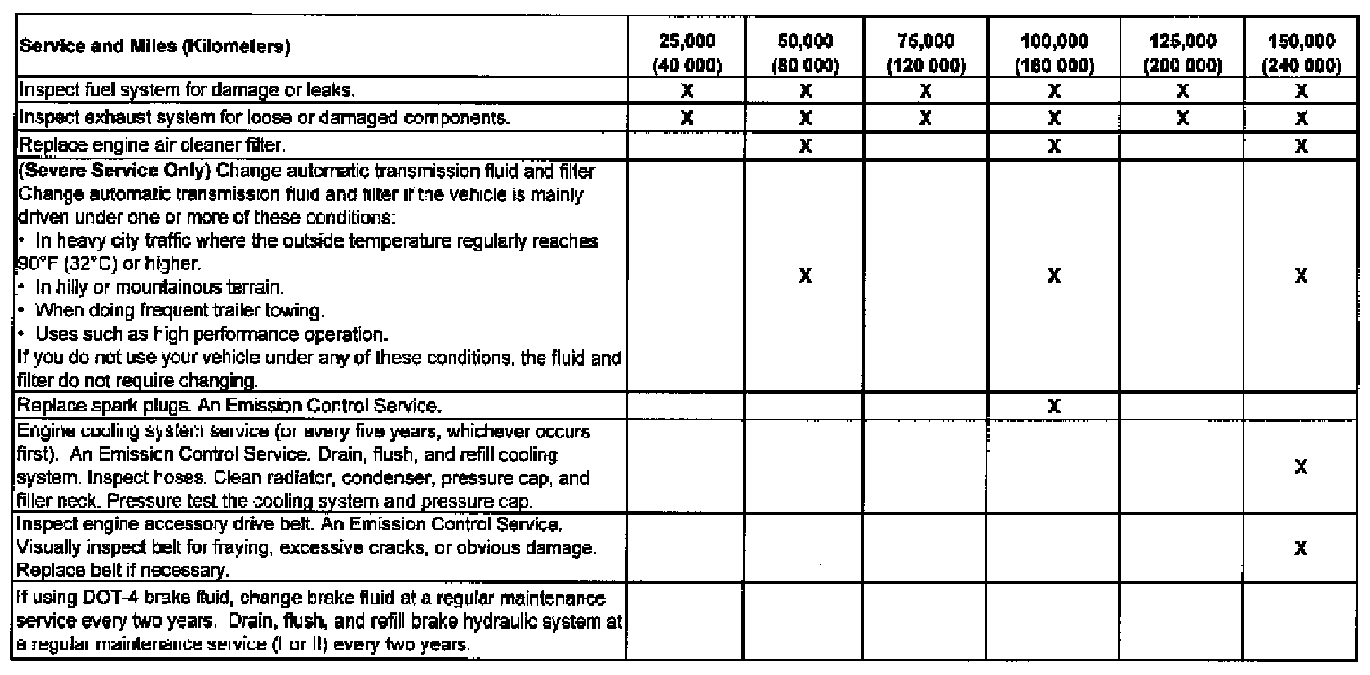 service (I or II) after the indicated miles (kilometers) shown for each item.