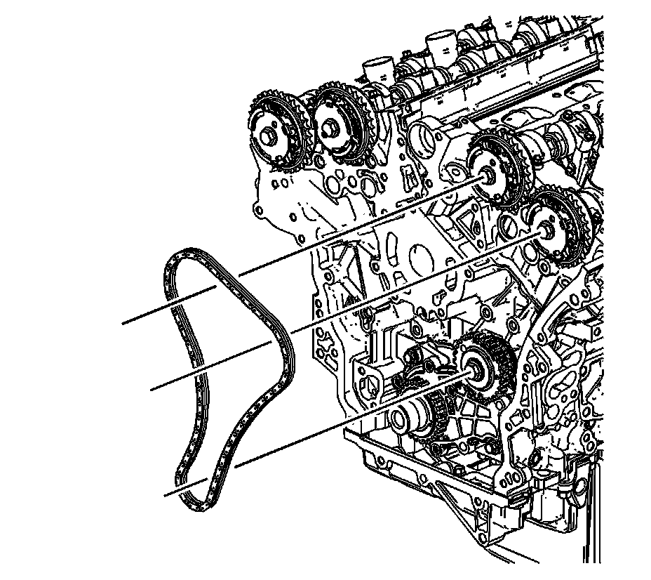 2. Wrap the primary camshaft drive chain around the large sprockets of each camshaft intermediate drive chain idler and the crankshaft sprocket.