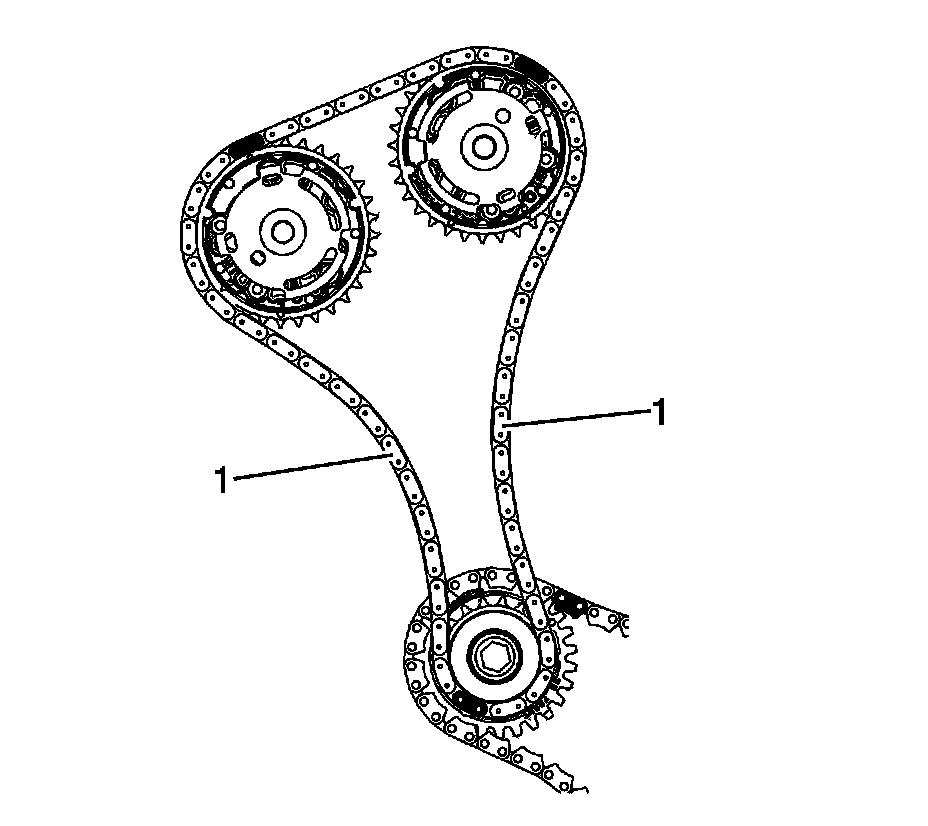 8. There will be 18 links (1) between the right camshaft intermediate drive chain idler timing camshaft drive chain link and each right camshaft position actuator sprocket timing camshaft drive chain link.