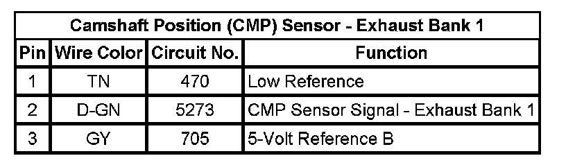 Camshaft Position (CMP) Sensor - Exhaust Bank 1