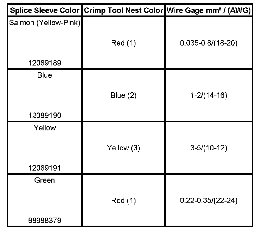 4. Select the proper DuraSeal splice sleeve according to the wire size. Refer to the above table at the beginning of the repair procedure for the color coding of the DuraSeal splice sleeves and the crimp tool nests.