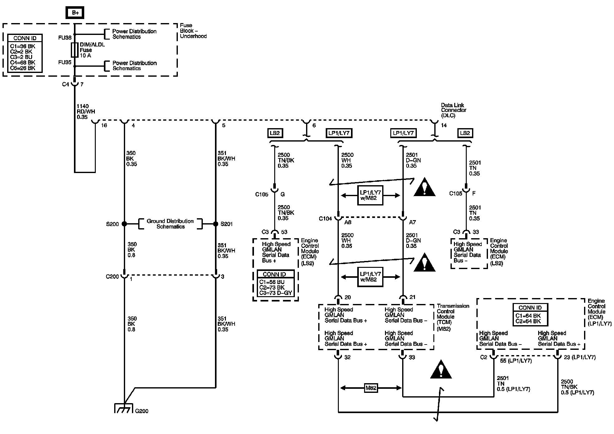 Locations: The locations for the Connectors, Grounds, Splices, and Grommets shown within these diagrams can be found via their numbers at Vehicle Locations. Locations