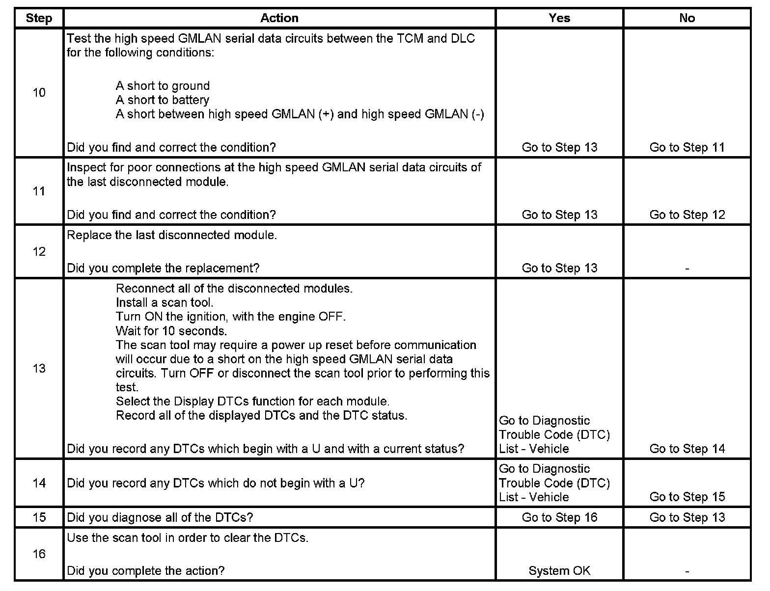 2. A partial malfunction in the high speed GMLAN serial data circuits uses a different procedure from a total malfunction of the high speed GMLAN data circuits. The following modules communicate on the high speed GMLAN serial data circuits: