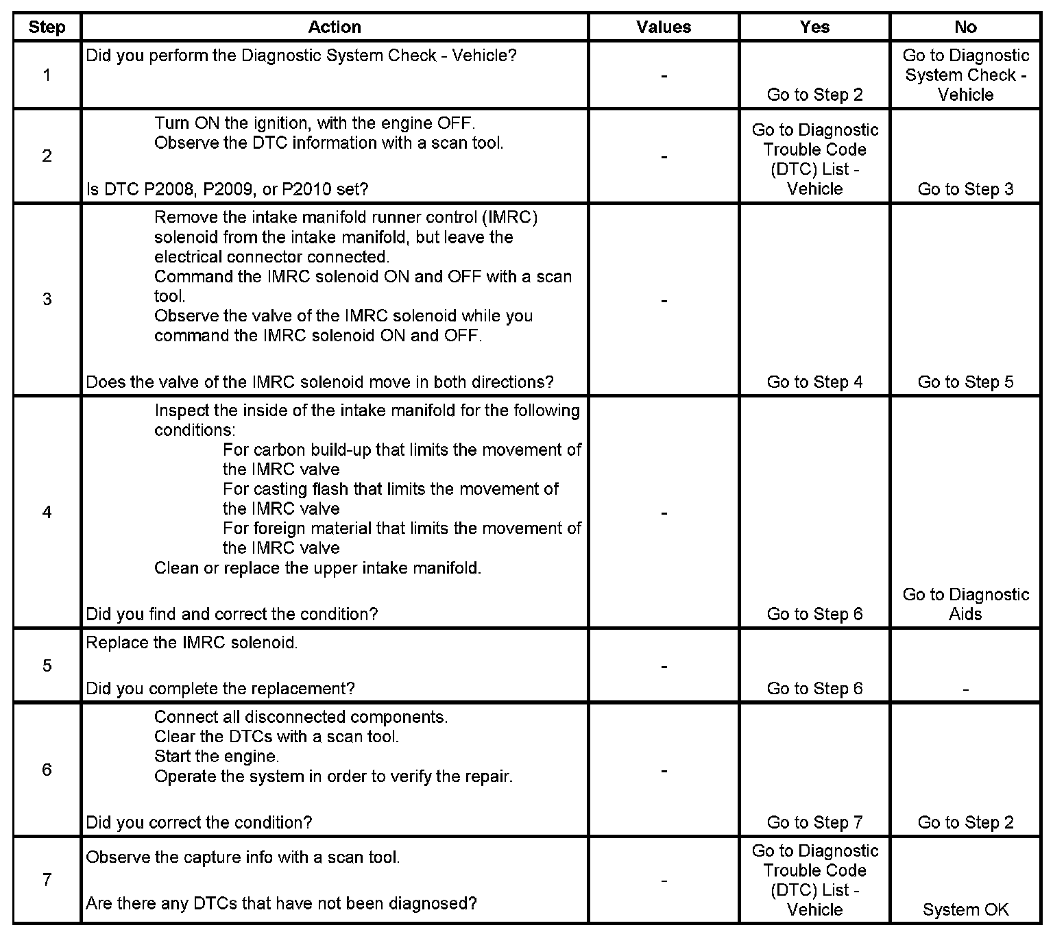 2. This diagnostic table will only diagnose the mechanical portion of the IMRC solenoid. If there is a DTC set for the IMRC solenoid, refer to the appropriate DTC table.