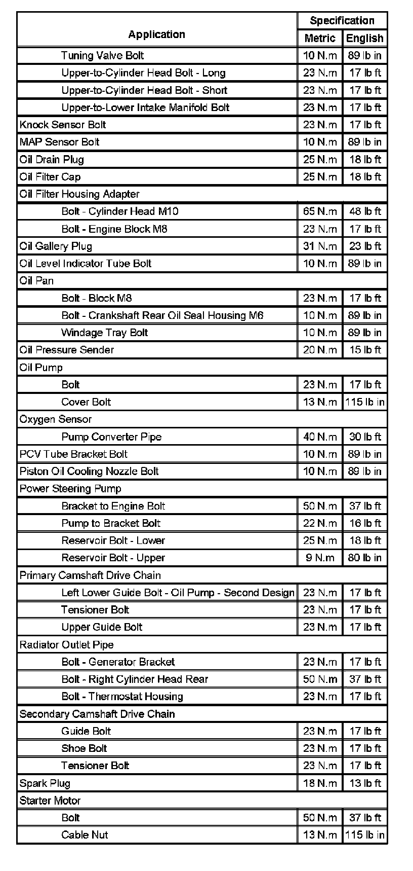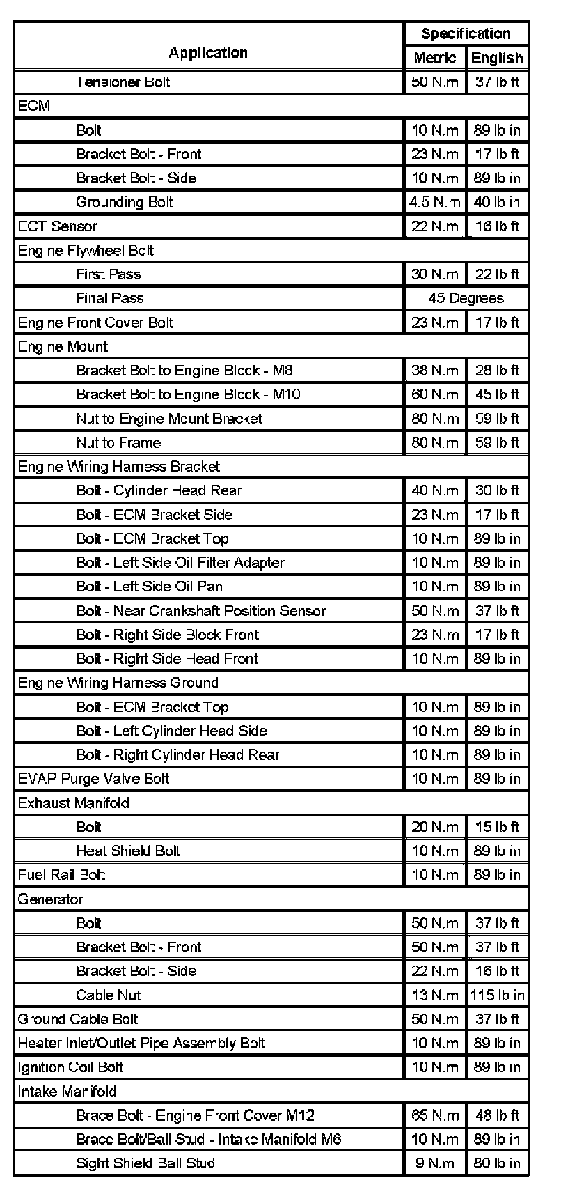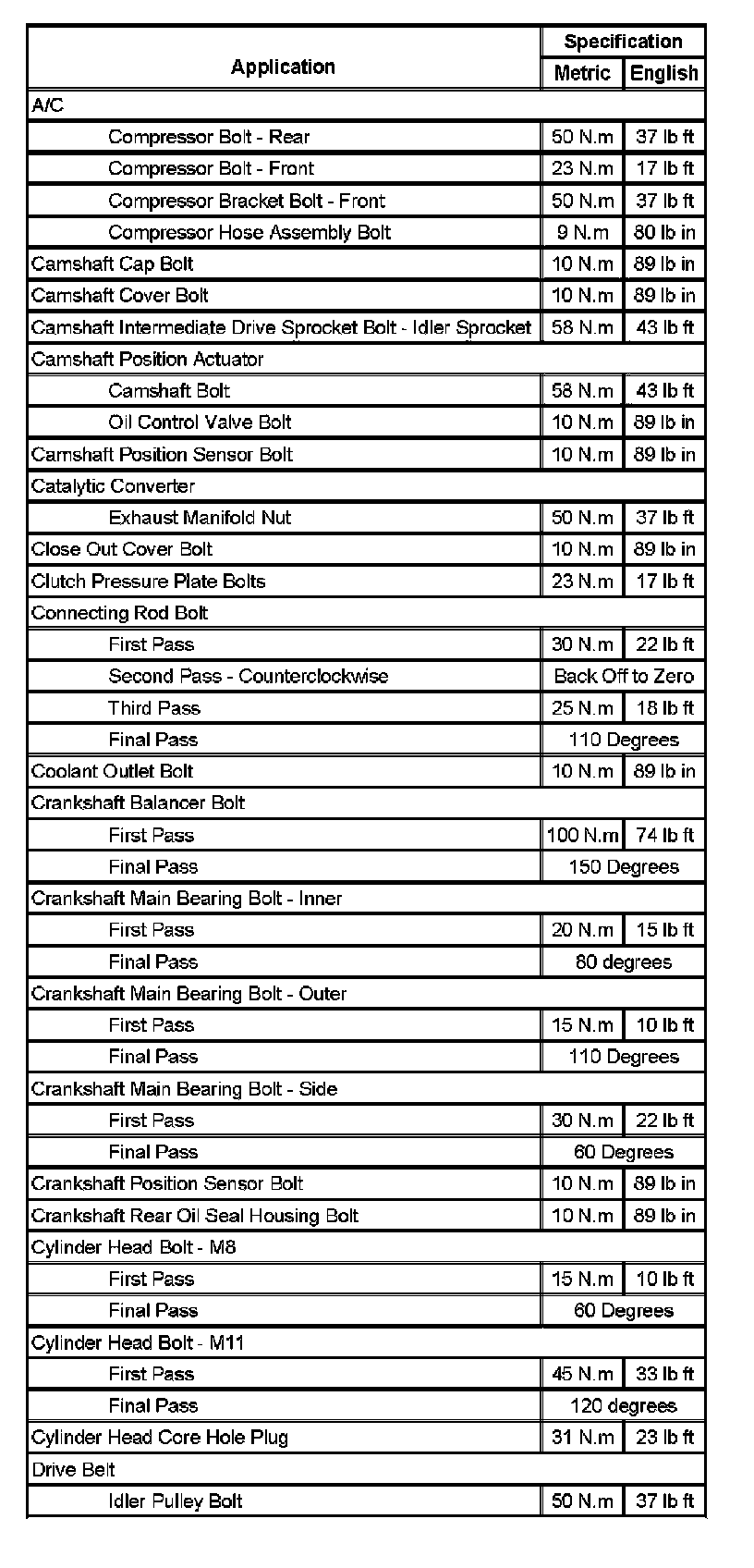 Fastener Tightening Specifications (Part 1):