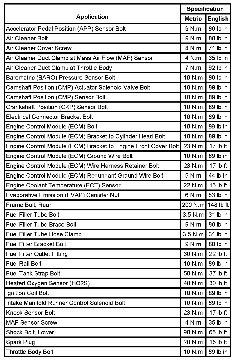 Fastener Tightening Specifications