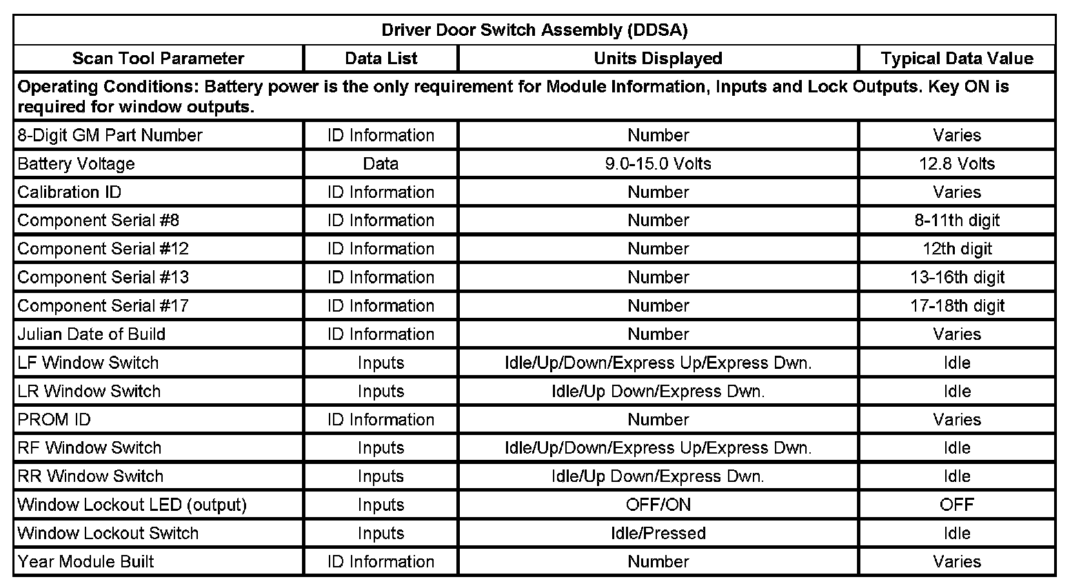 Driver Door Switch Assembly (DDSA)