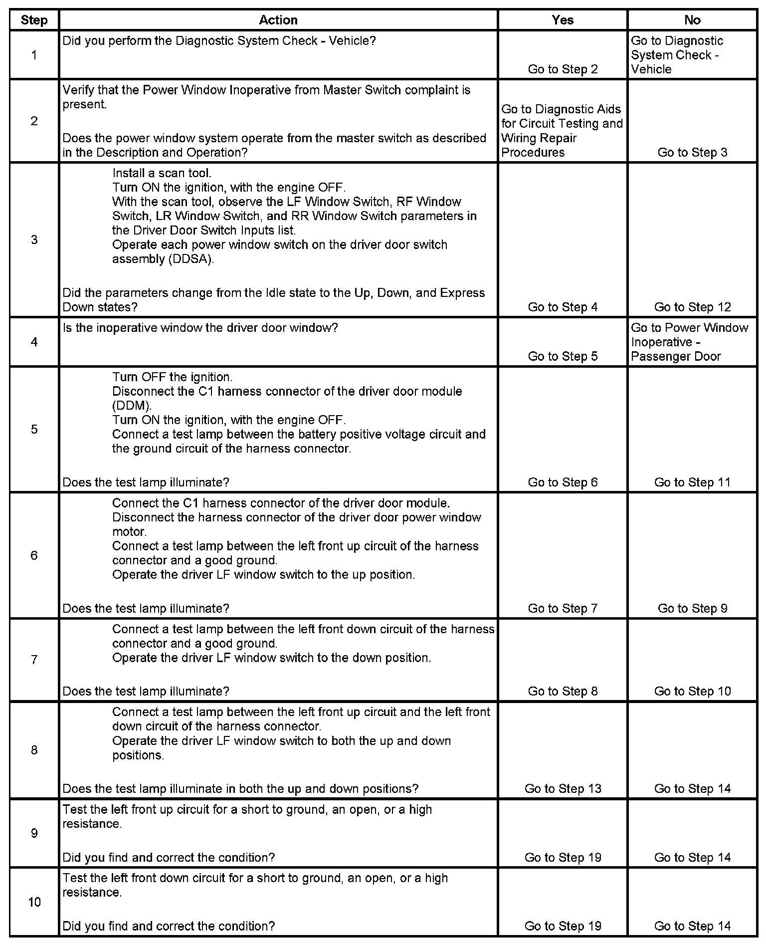 Power Window Inoperative from Master Switch