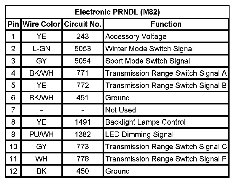 Electronic PRNDL (M82)