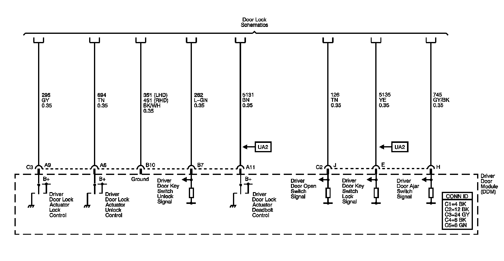 Driver Door Module (DDM) Power, Ground, and Serial Data