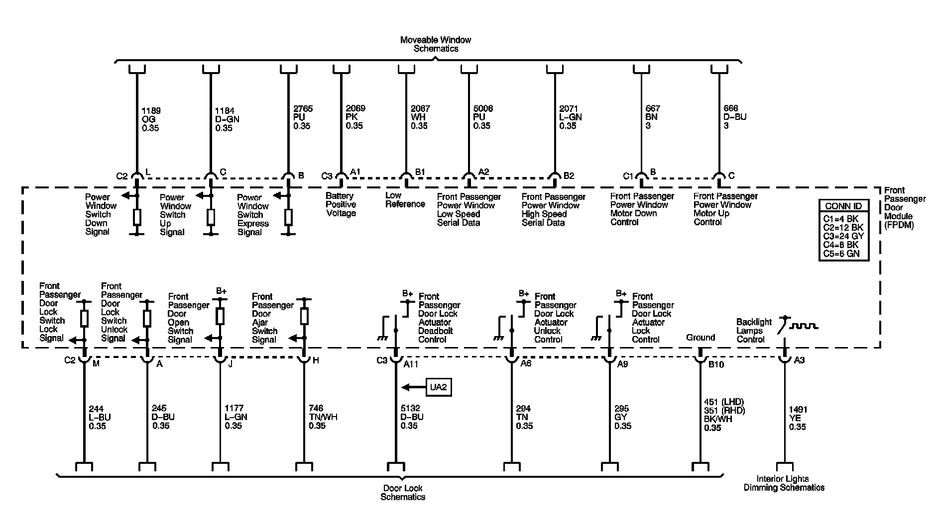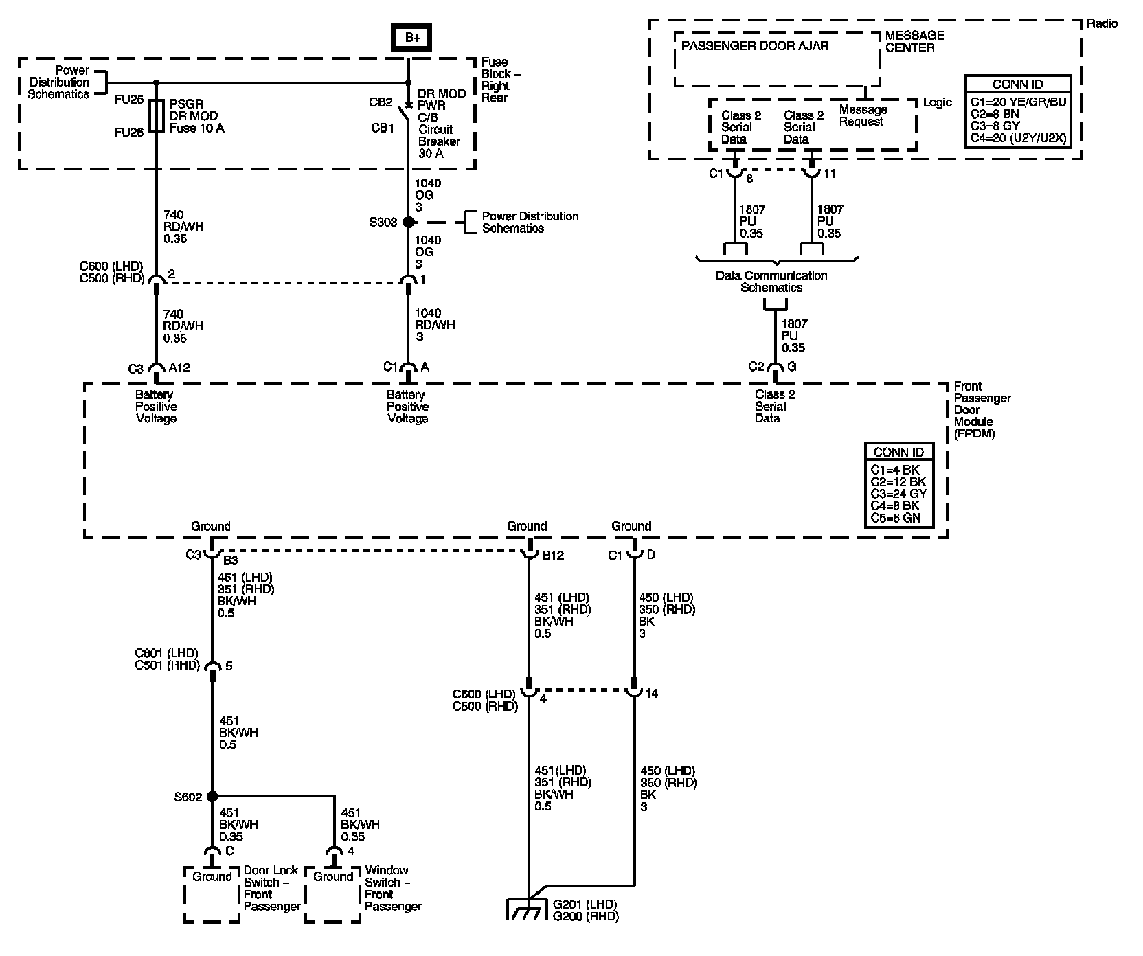 Front Passenger Door Module (FPDM) Power, Ground, and Serial Data