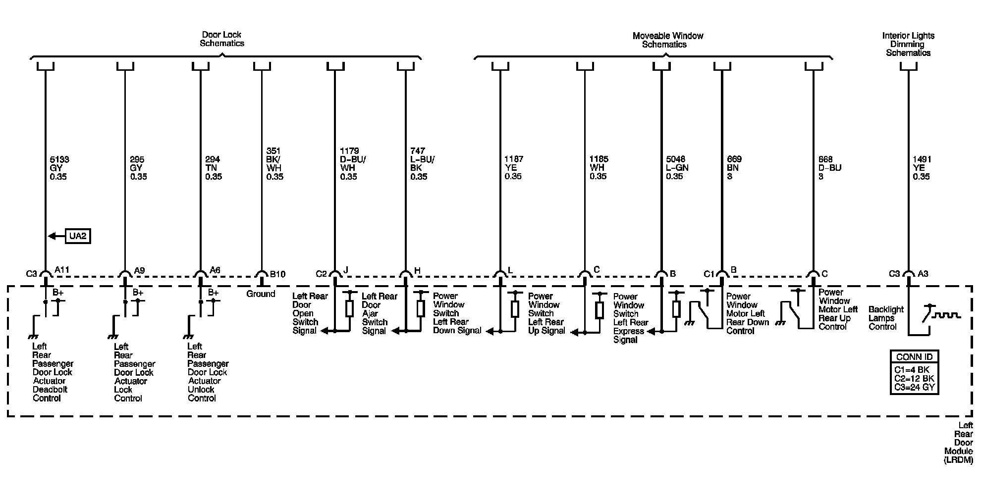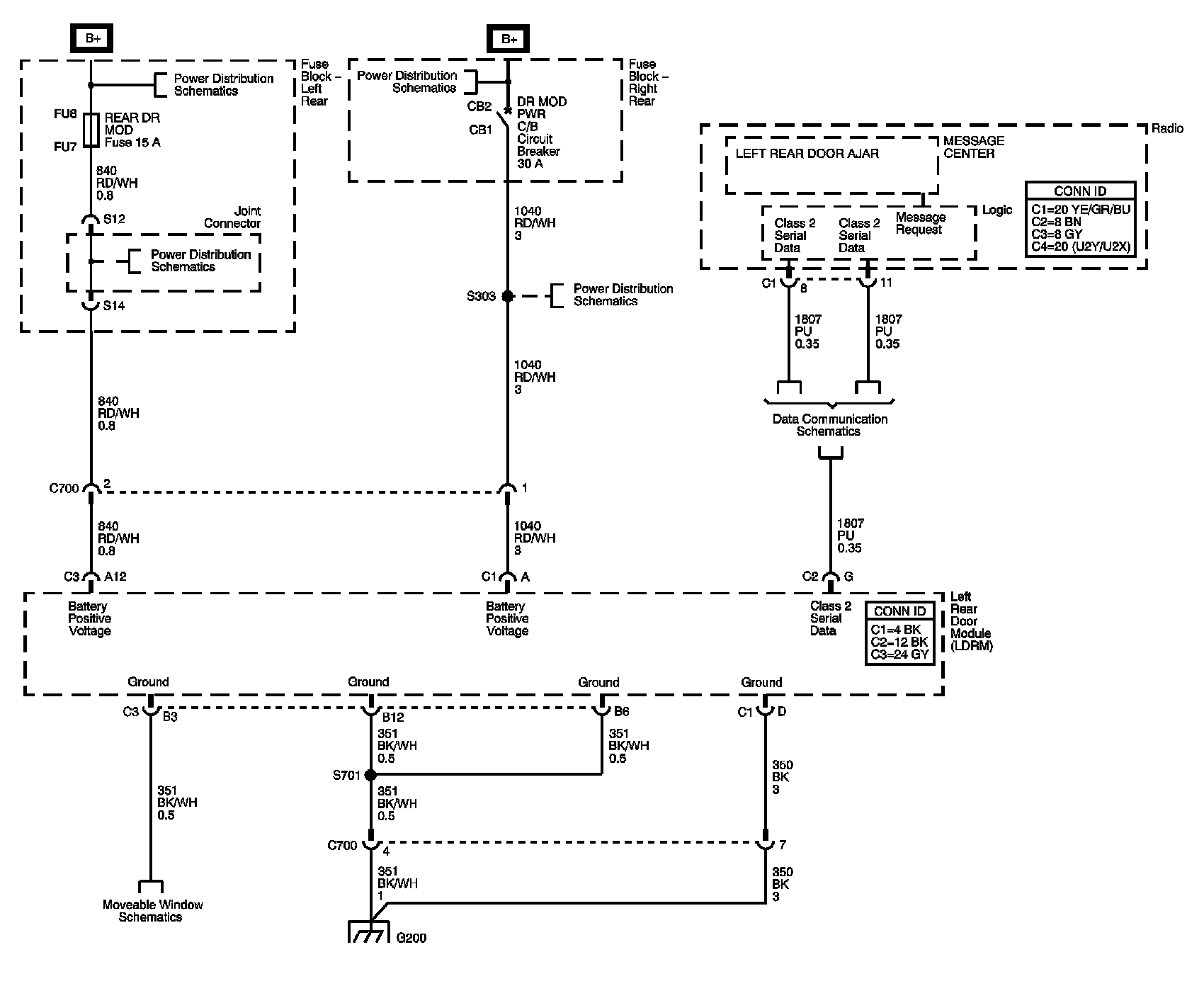 Left Rear Door Module (LRDM) Power, Ground, and Serial Data
