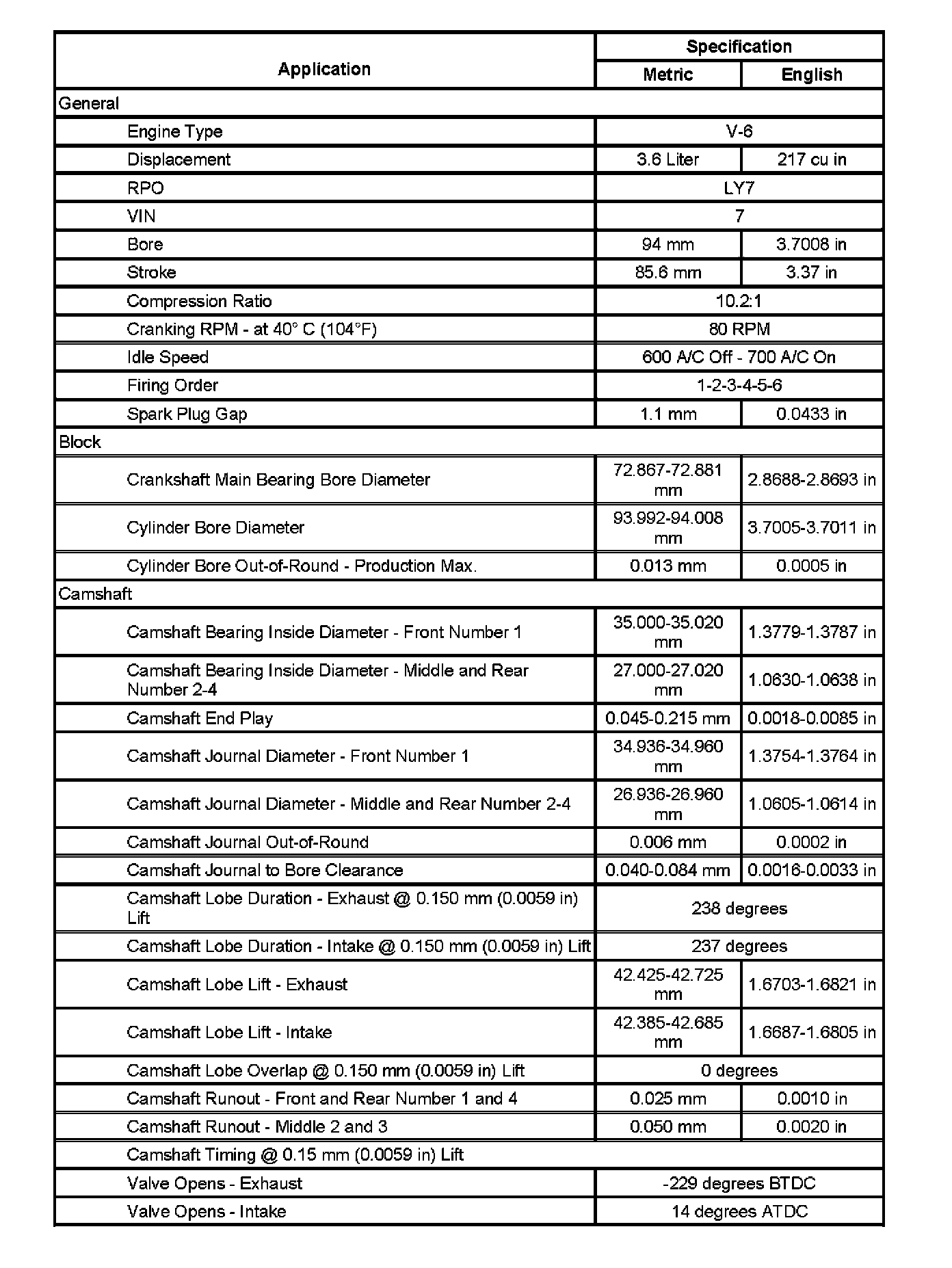 Engine Mechanical Specifications (Part 5):