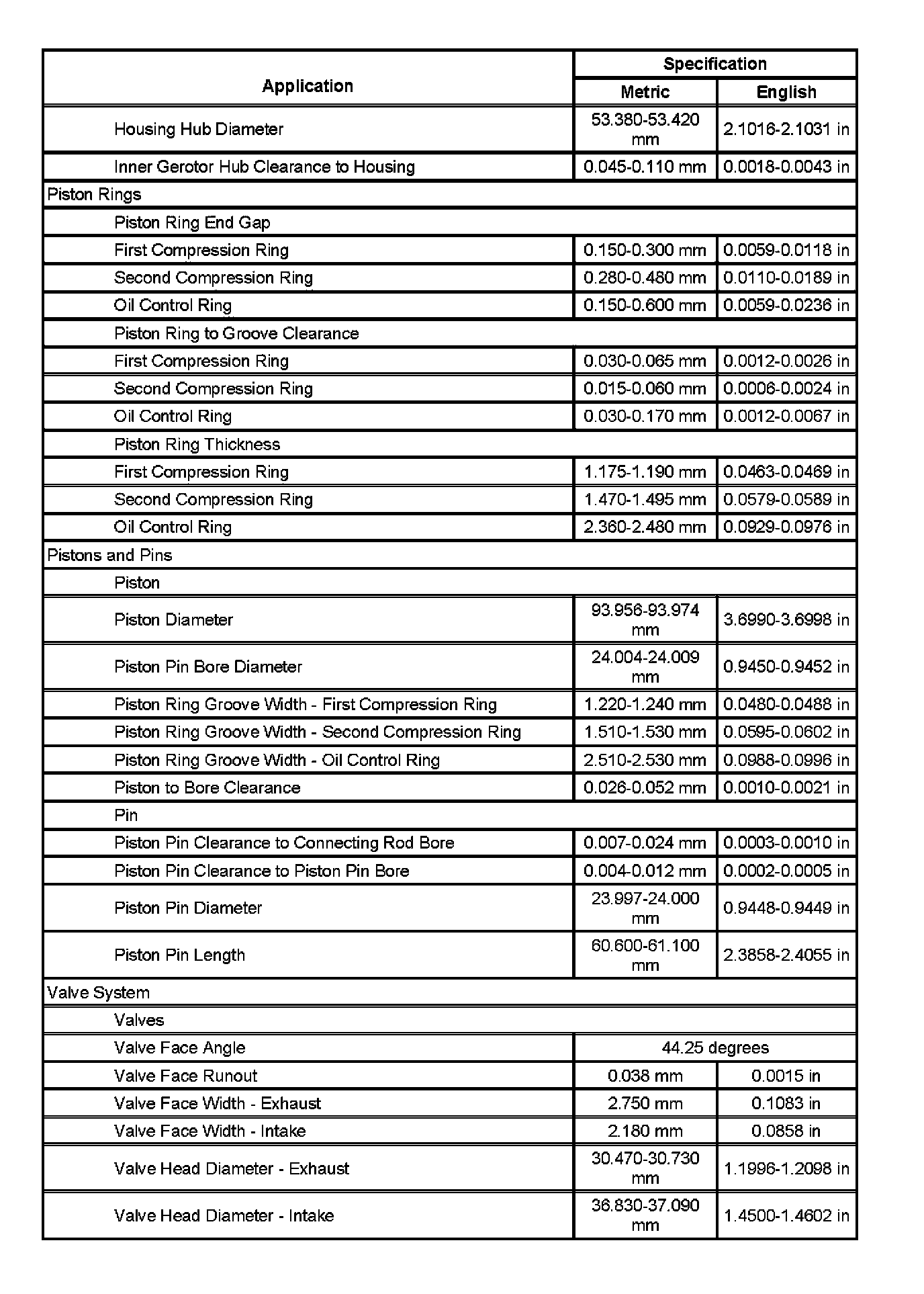Engine Mechanical Specifications (Part 2):