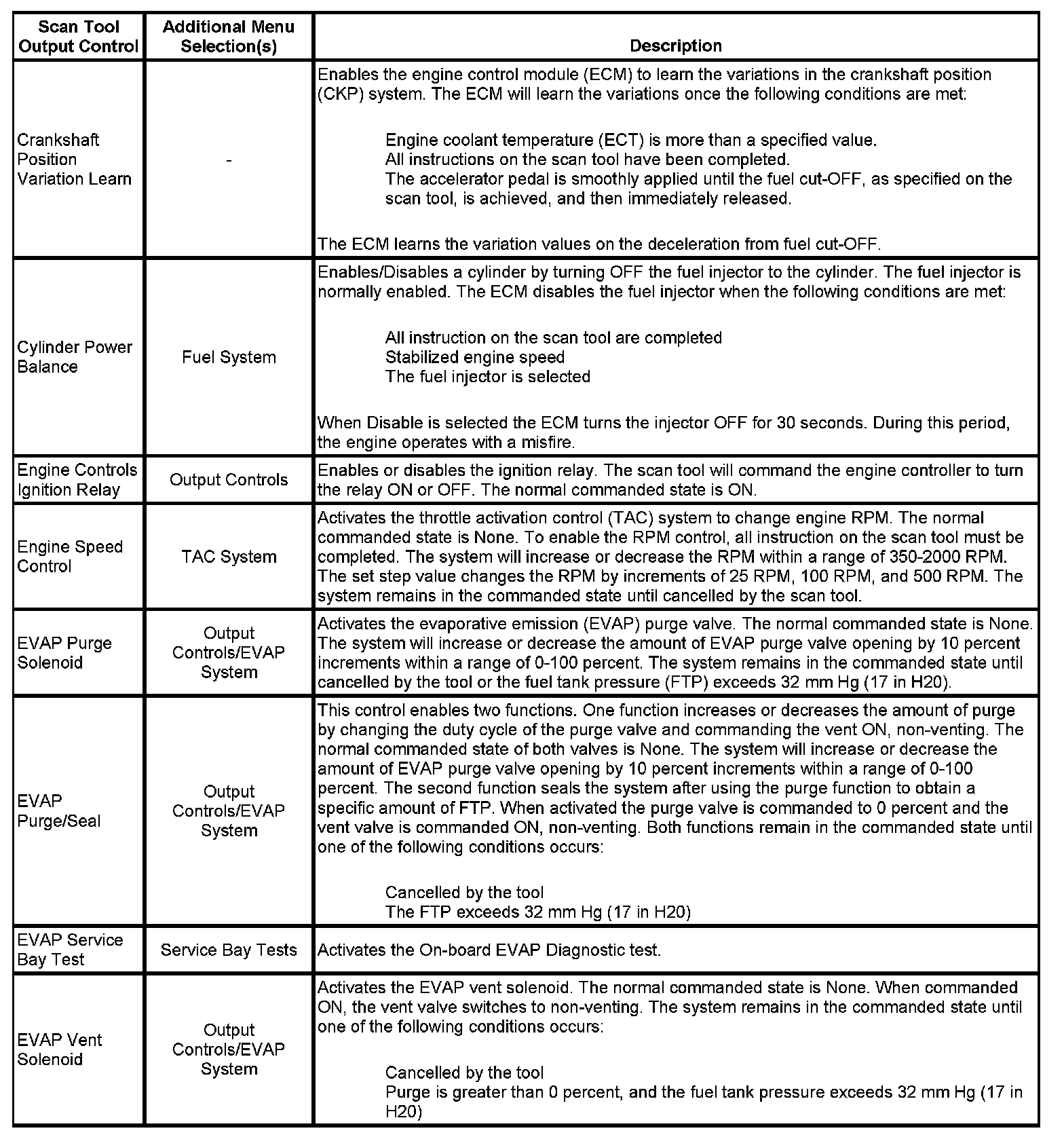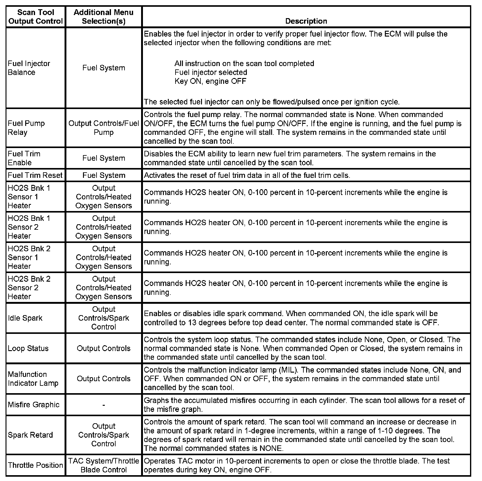 Scan Tool Output Controls