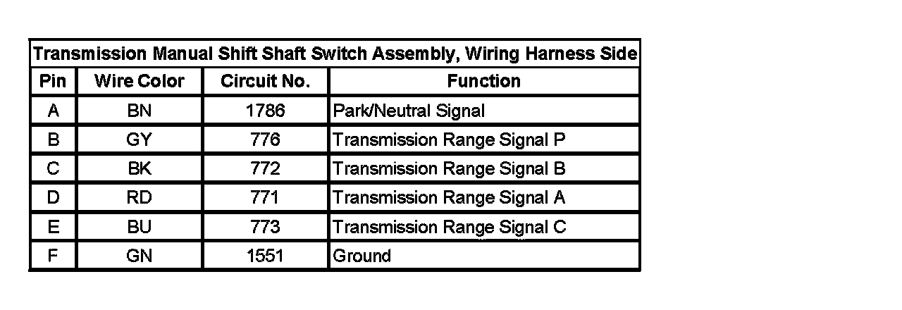 Transmission Manual Shift Shaft Switch Assembly, Wiring Harness Side: