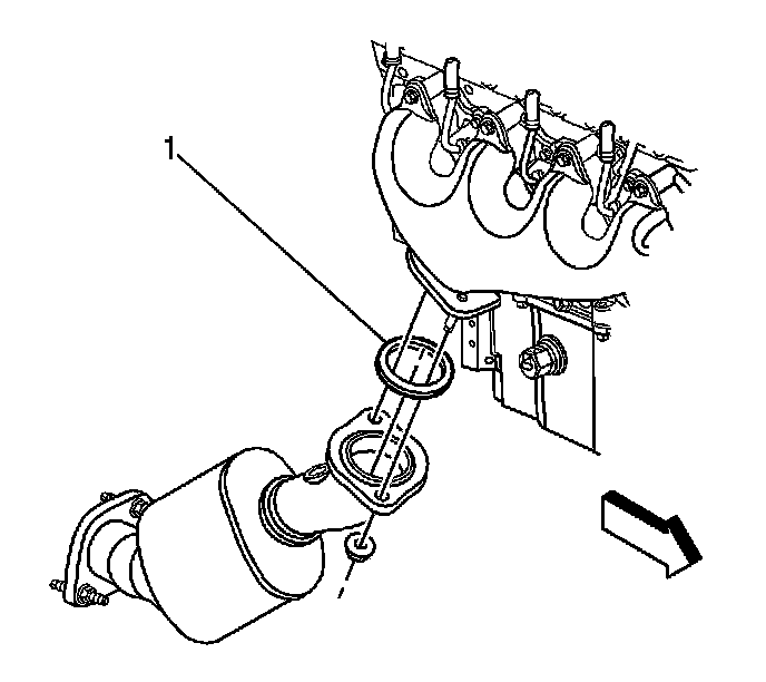 2. Install the catalytic converter gasket (1) to the catalytic converter.