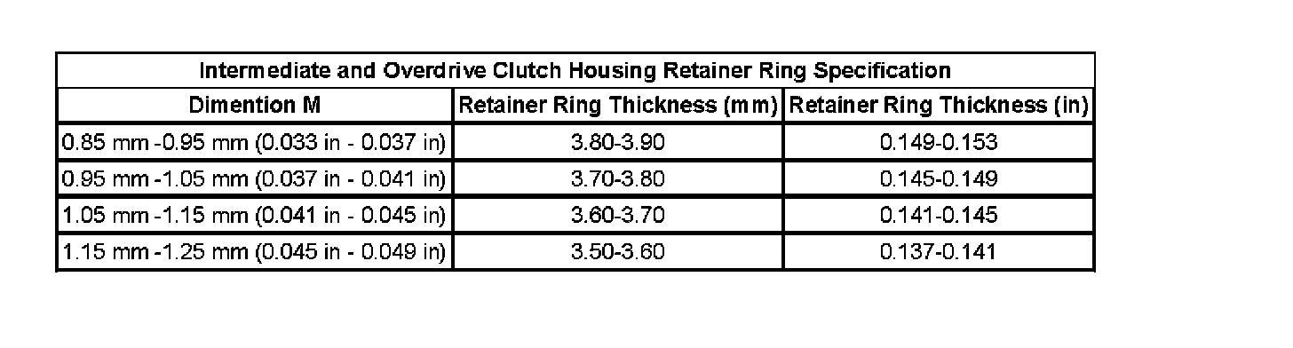 Intermediate and Overdrive Clutch Housing Retaining Ring Specifications: