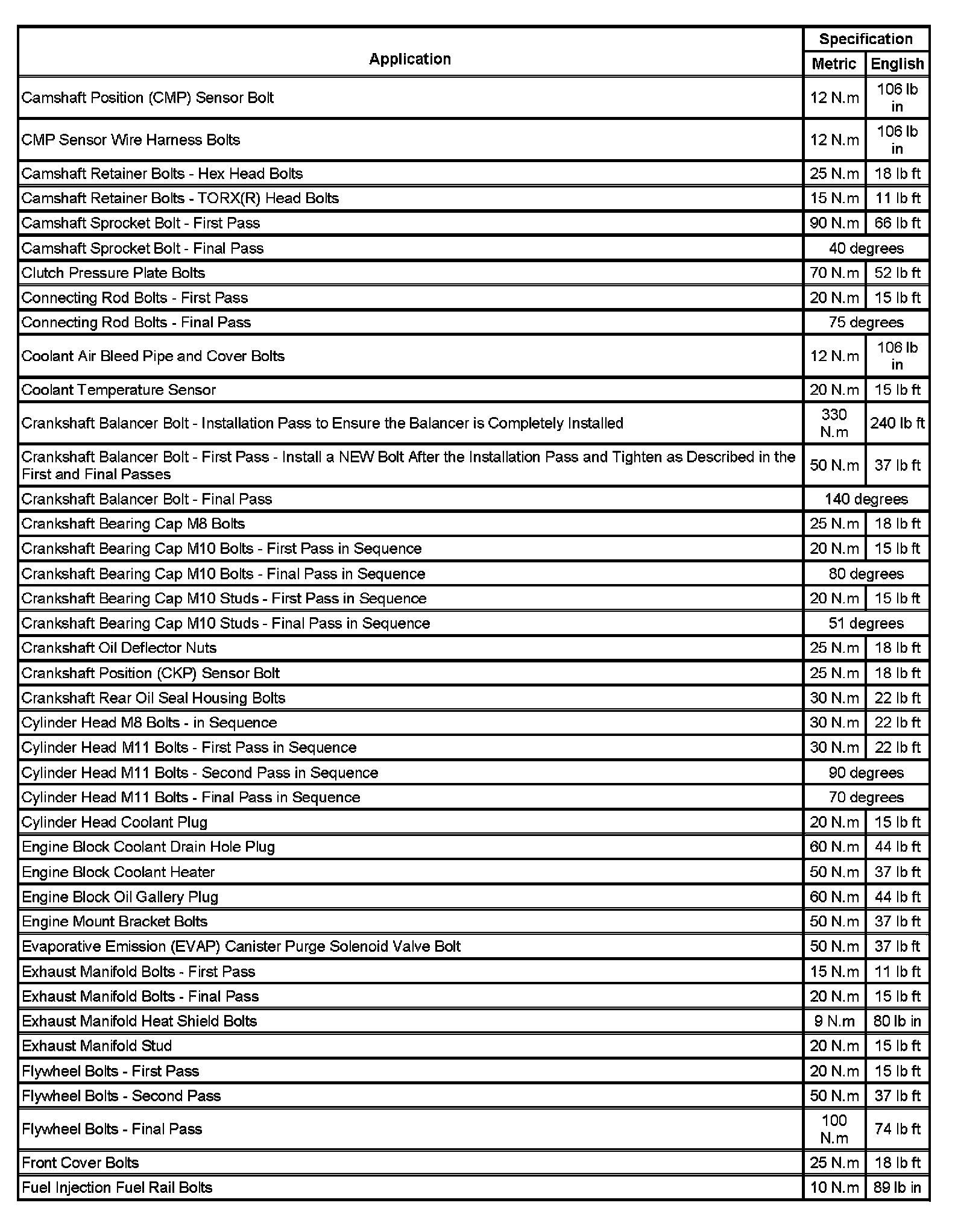 Fastener Tightening Specifications (Part 1):